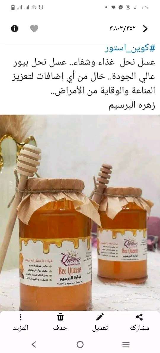 عسل نحل كوين ستور غذاء وشفاء١٦٠ج.م