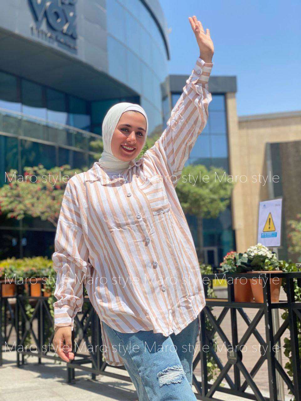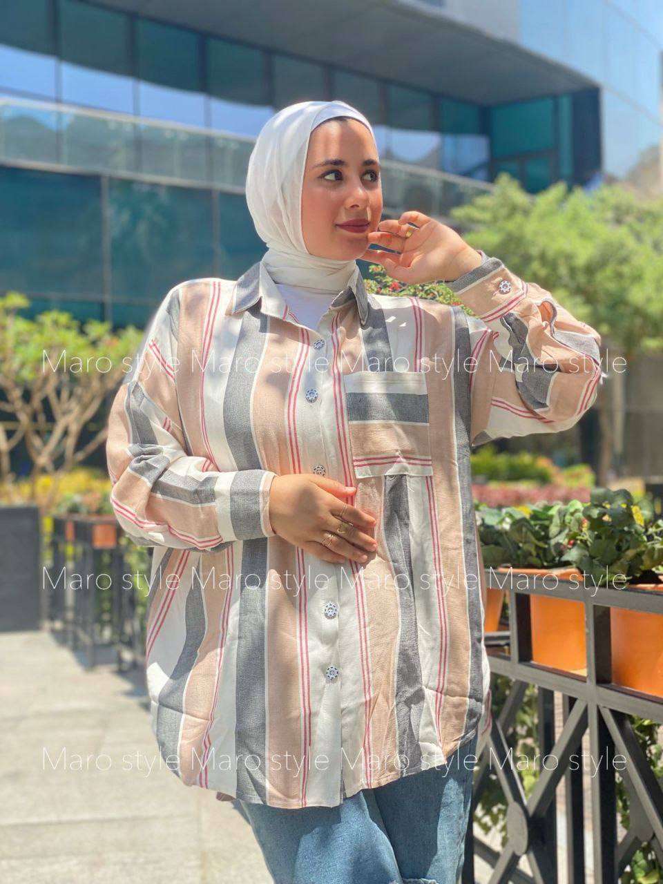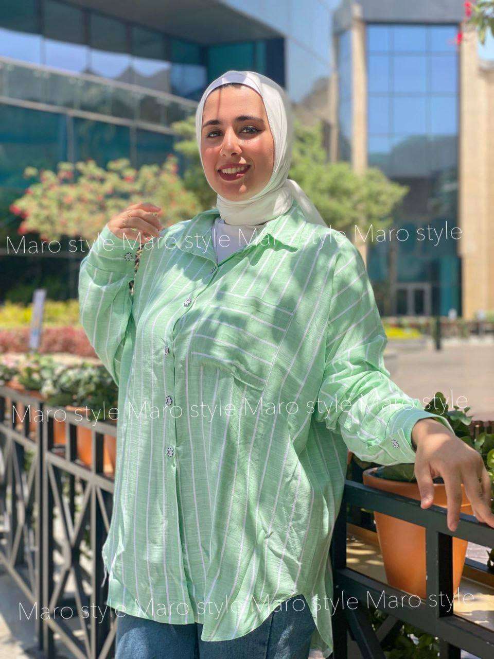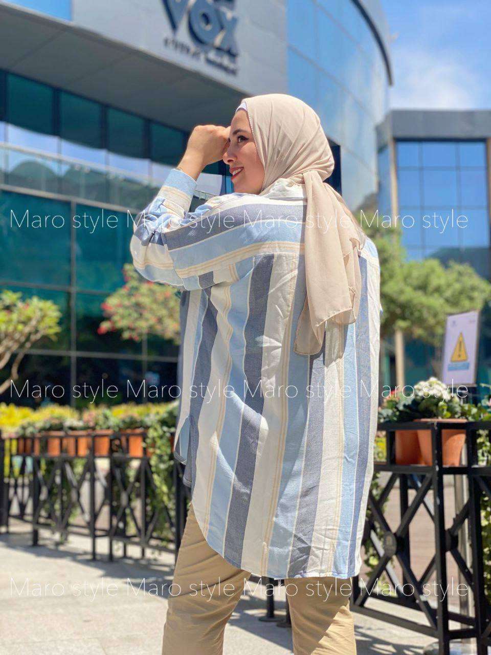 الموديل 💫💫 شيميز مقلم الخامة 💫💫 كتان المقاس 💫💫 وان سايز ل85 ك الكود 💫💫 086 sh السعر 💫💫 350