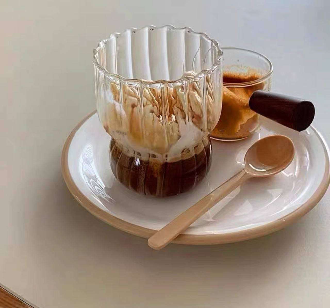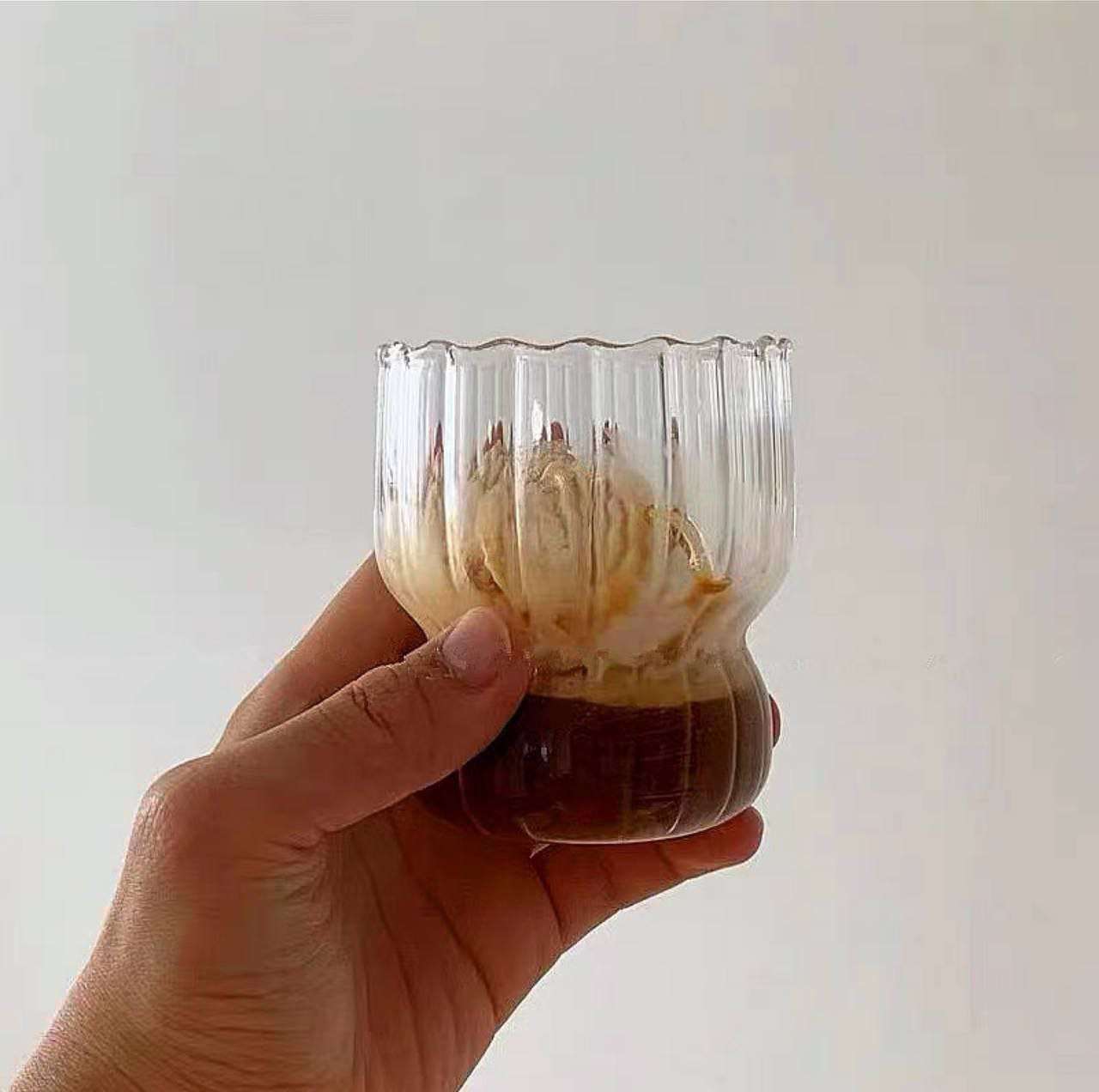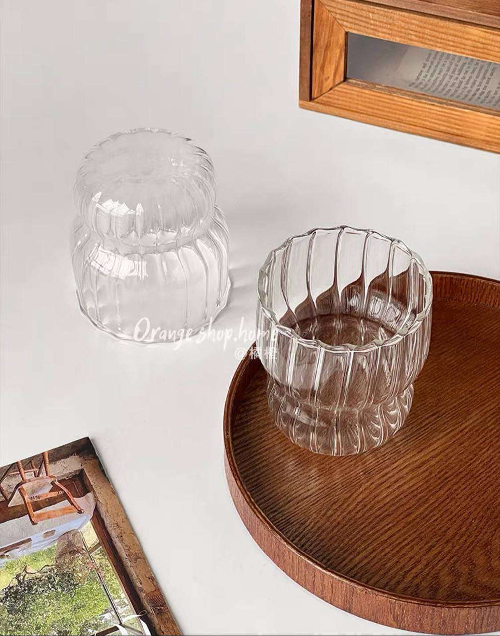 كوب زجاج مضلع 2025 متريال زجاج حراري. سعة 300ملي القطعه في علبه