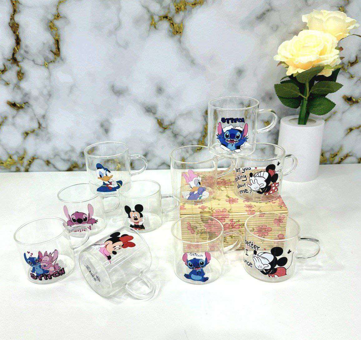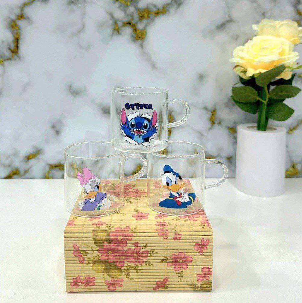 ساعة الحظ من ملوك الرفايع 👑👑👑 مج بيركس ديزني ❤️ فنجان قهوه زجاج بيركس حراري مقاس صغير حوالي 120 ملي مستورد الاشكال استتش بطوط ميكي