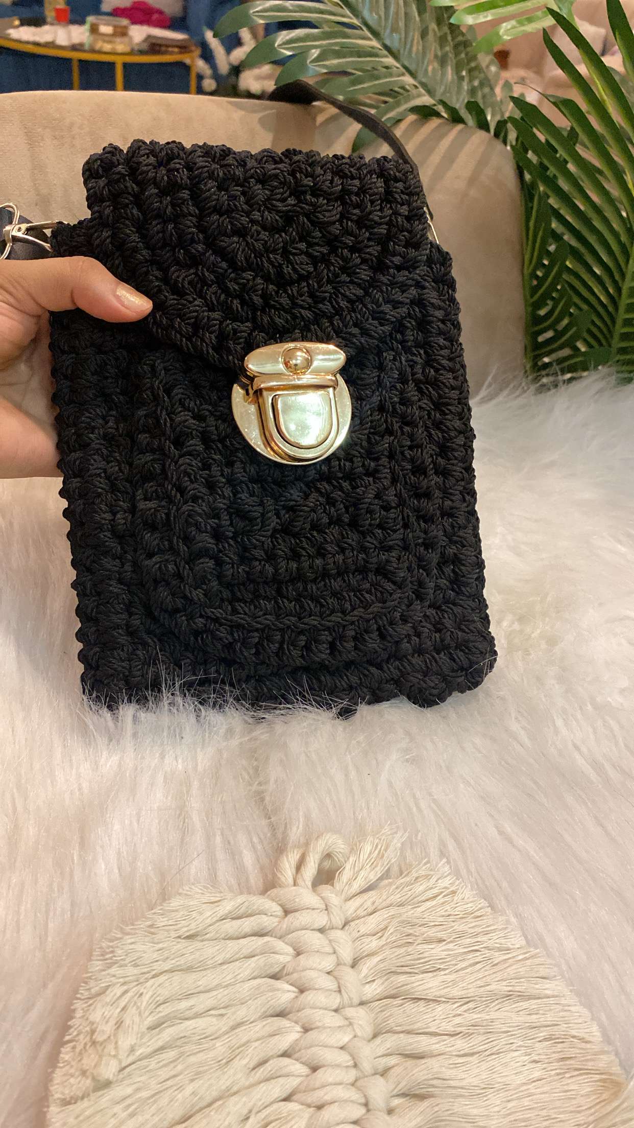 شنطه كروشيه ميني للموبايل والمحفظه بايد جلد