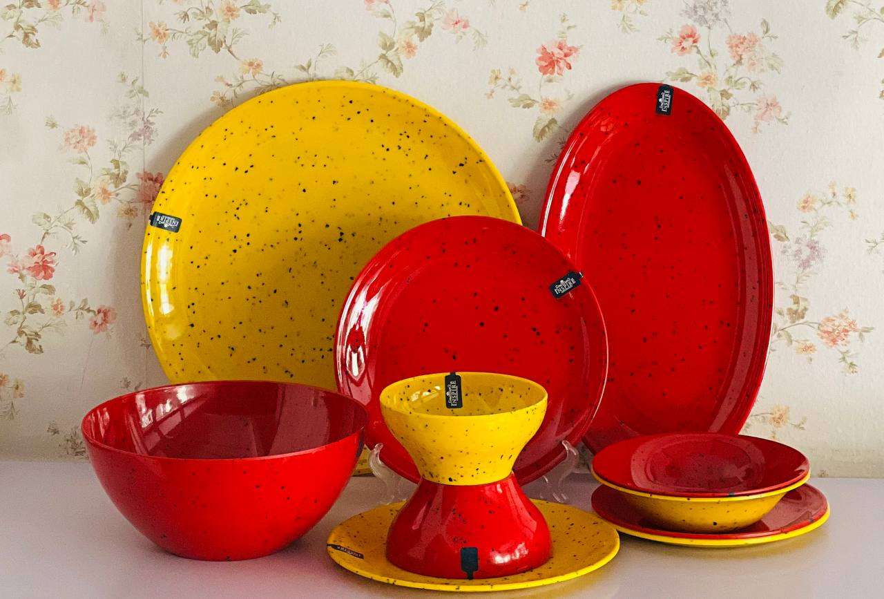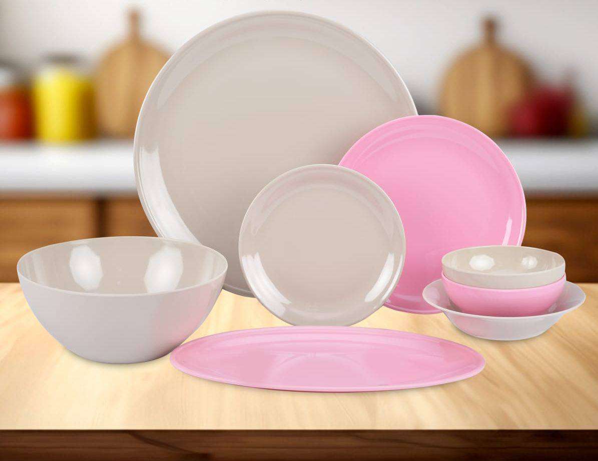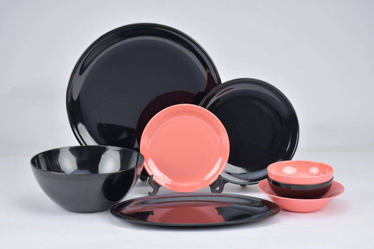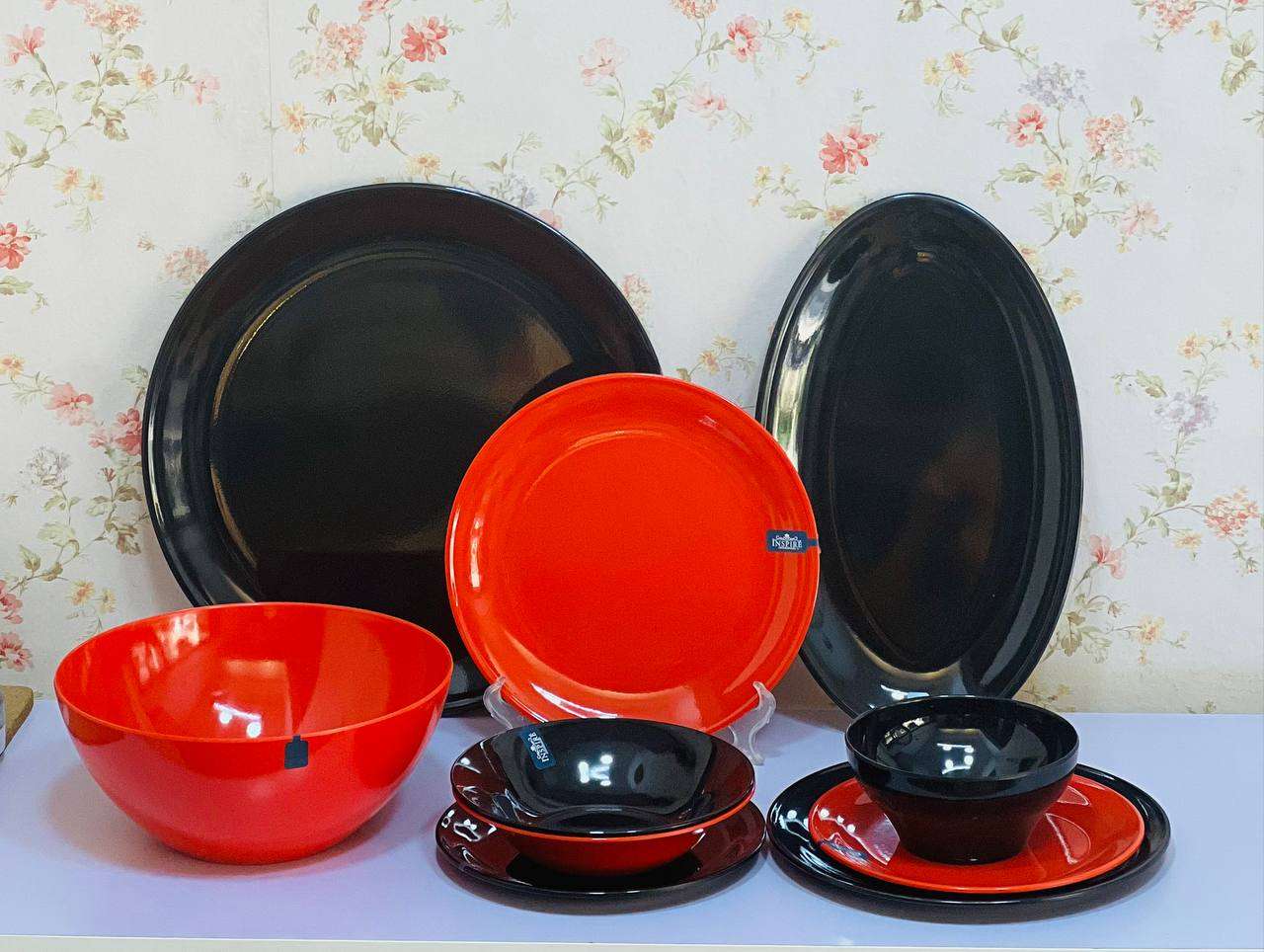 طقم عشاء ملامين ضدالكسر وبيدخل غساله الأطباق والميكرويف ٢٧ قطعه