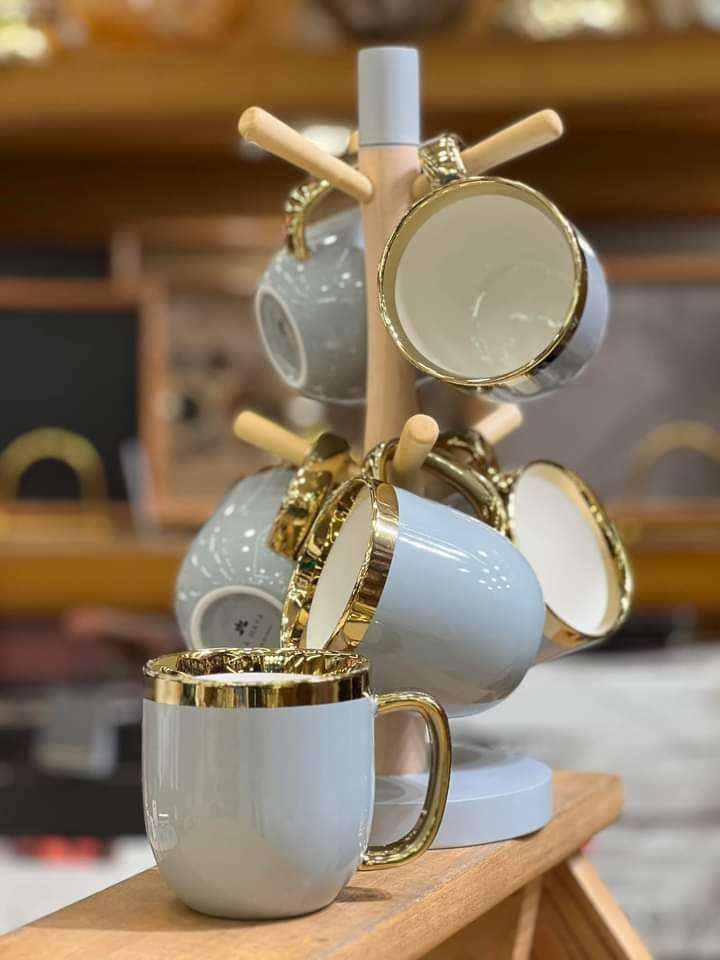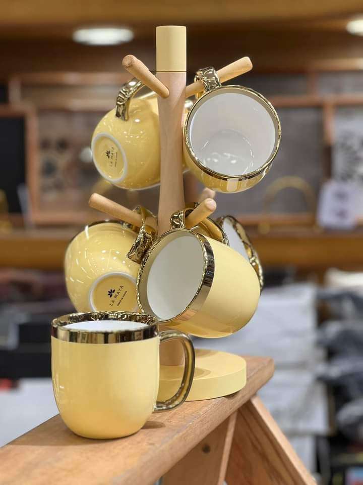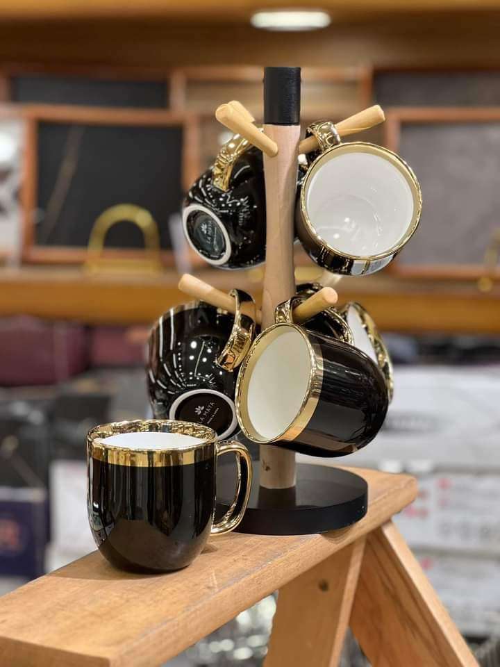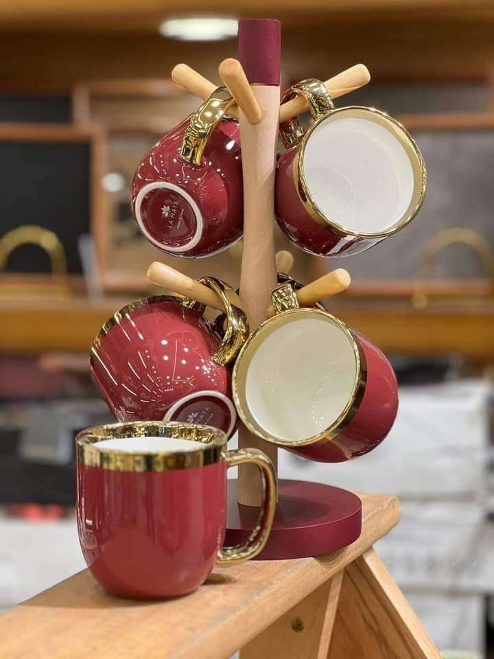 #هوم_لاين_كل_يوم_جديد 🥰😘 طقم كافيه فاين بورسيلين خامه عاليه الجوده اشكال جديده كليا لكل بيت عصري وكل عروسه .... مج مقاس كبير💪🦾 6 مج فاين بورسيلين . فاخر وحامل خشب الوان عررررررررض جامد m