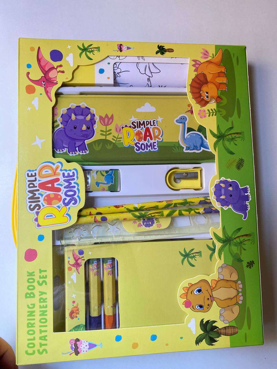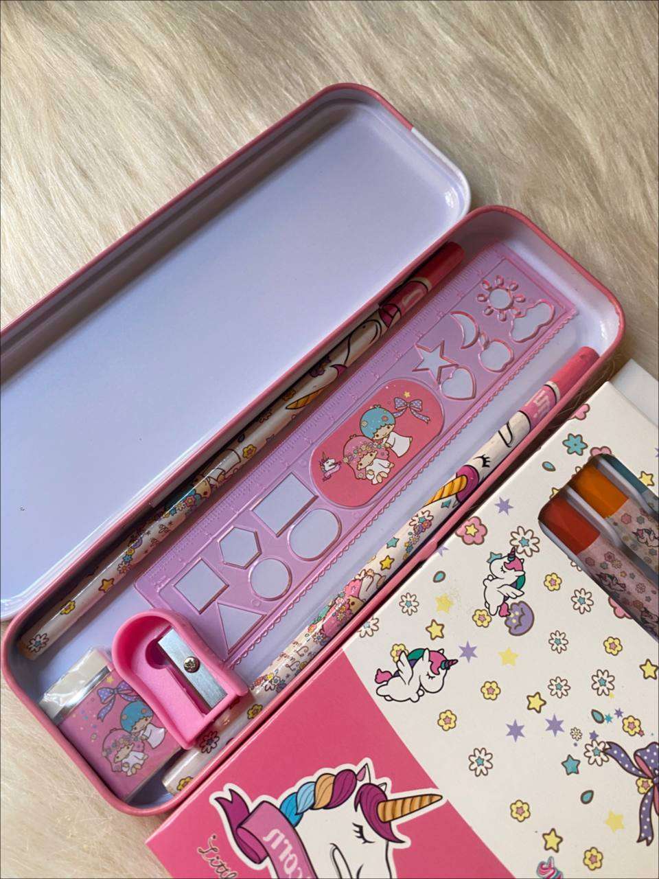 طقم رول تلوين +الوان شمع +مقلمة معدن متنية +2 قلم رصاص + براية +استيكة٢٢٥ج.م