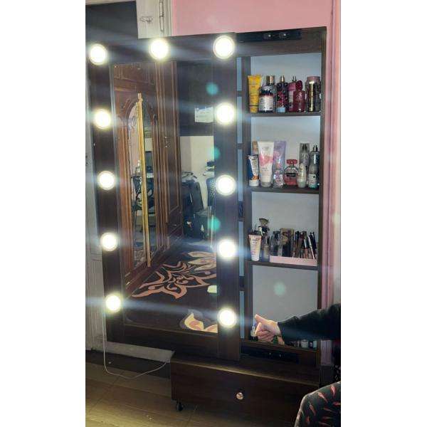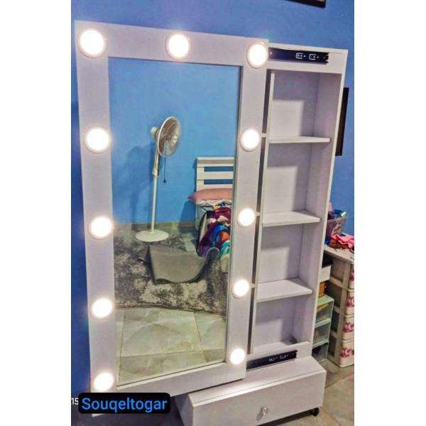 دولاب اكسسوار سيمبل بتصميم انيق يضيف لمسه جماليه لمنزلك دولاب اكسسوار بمرايا جرار اسبوتات بتنور 3 لون امن جدا علي الاطفال إضاءة قوية عرض 70 ارتفاع 180 عمق الدولاب 15سم عمق الد