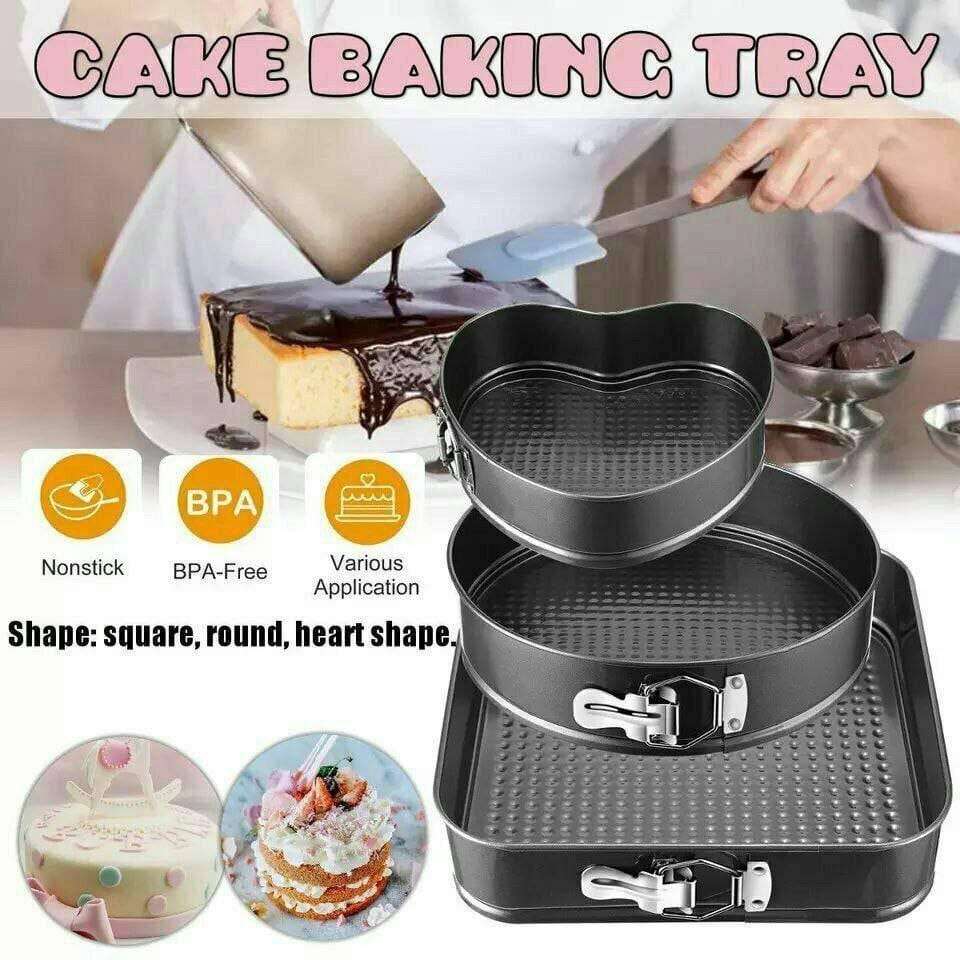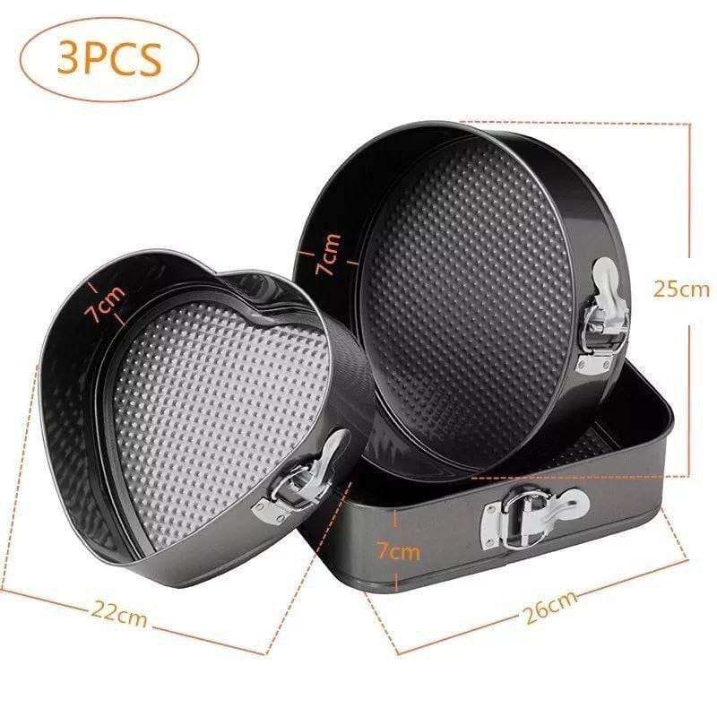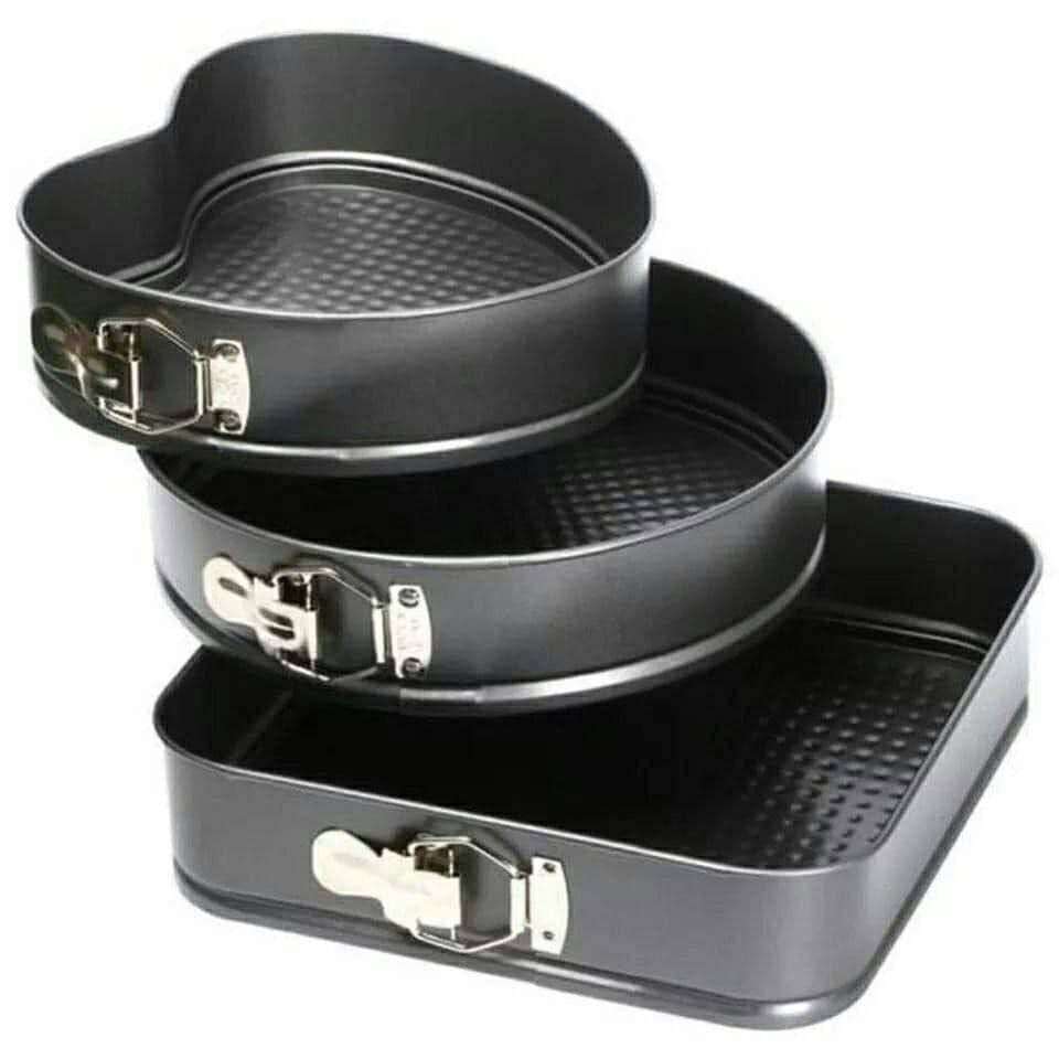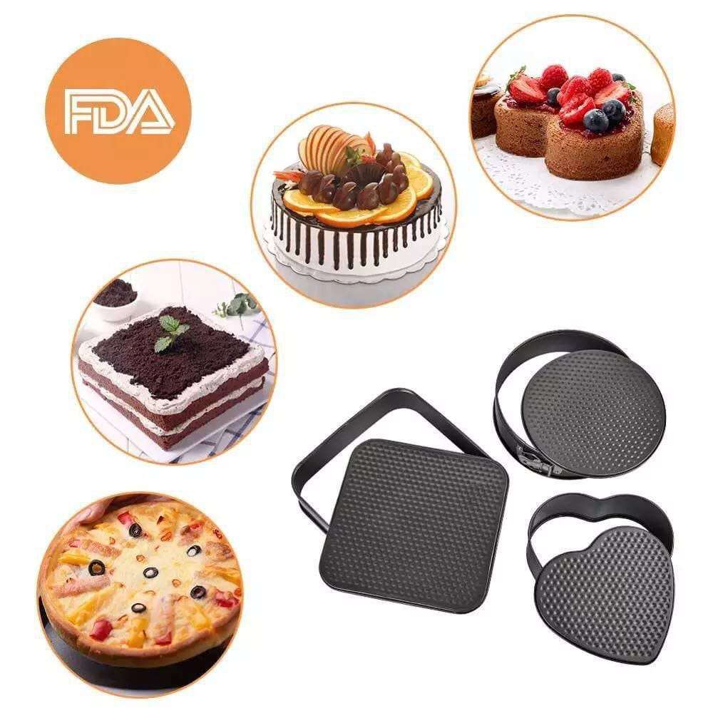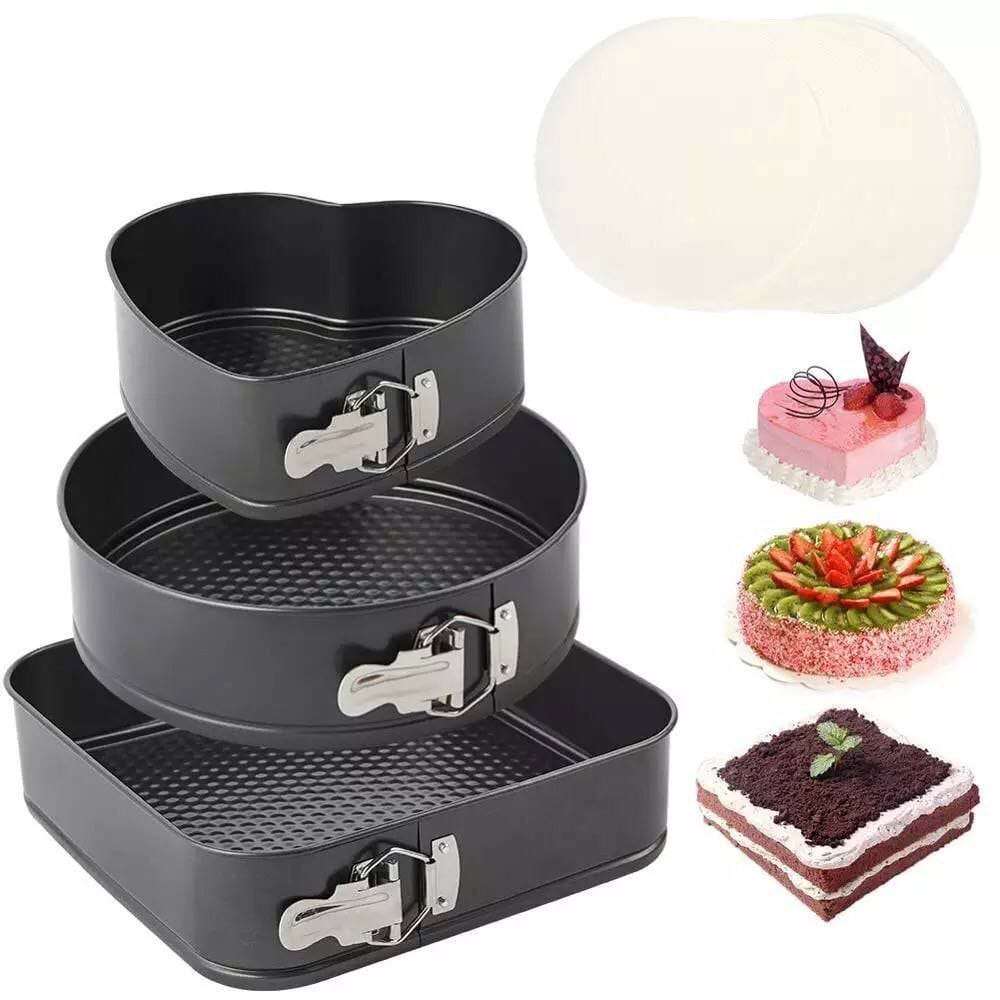صوانى كلبس اشكال طقم صواني (تشيز كيك)٣أشكال تيفال كلبس طقم صواني كيك كلبس أشكال (قلب/دائري/مربع) خامة صاج تيفال كليبس مستورة رائعة وخاصة بصناعة التشيز كيك لسهولة الفك و التركيب المقاسات : 24 سم