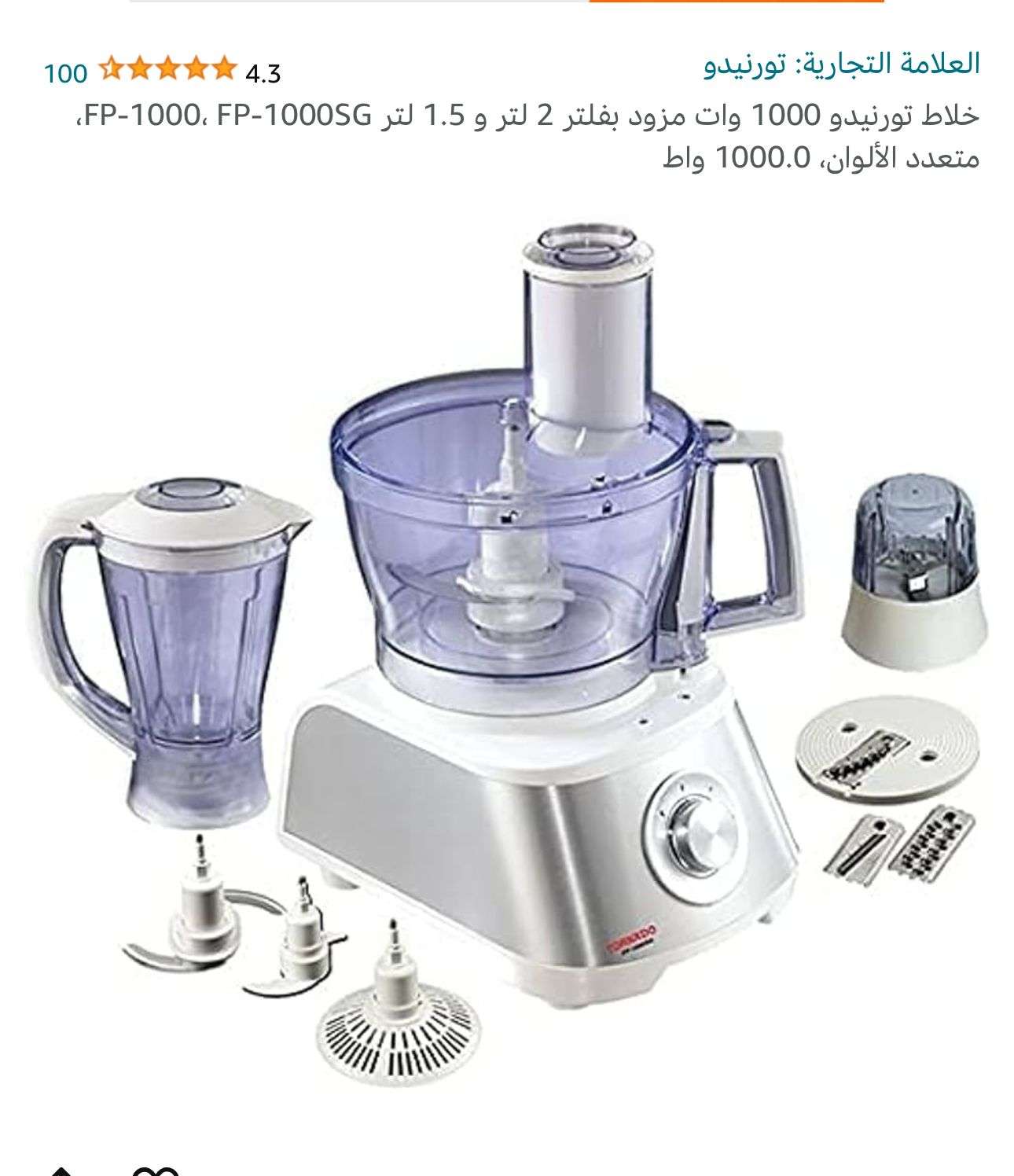 خلاط تورنادو عائلي 1000 وات متعدد الأغراض، مزود بفلتر 2/1.5 لتر
