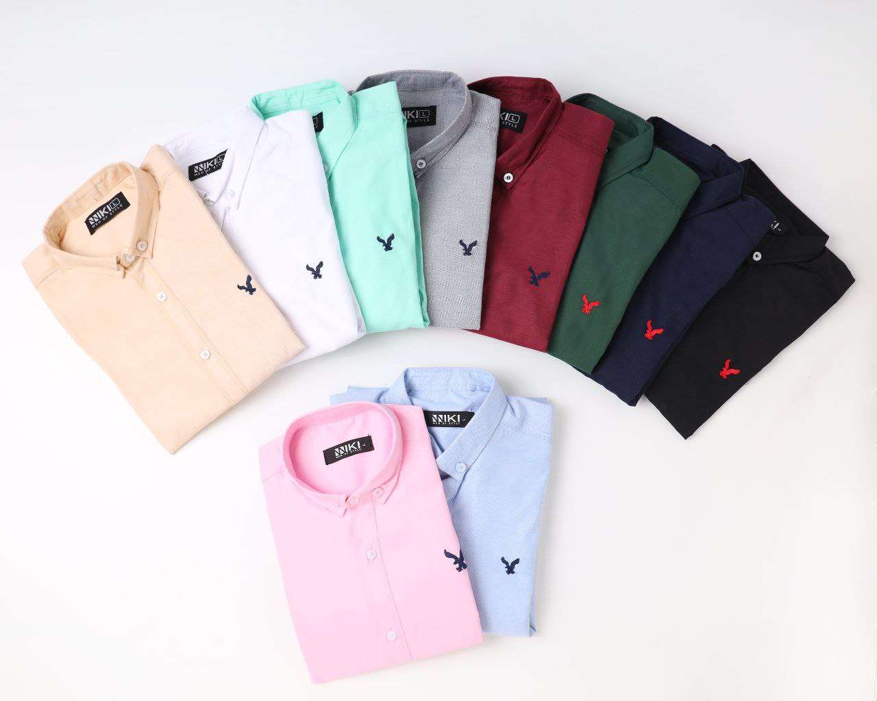 قميص امريكان ايجل - خامة اكسفورد قطن - تطريز بأعالي الجوده - الالوان: ابيض - اسود - لبني - رمادي - روز - منت جرين - كحلي - نبيتي - المقاسات (m- L- XL - 2xL-3xl) - التلبيس: -M 55 kg : 65kg