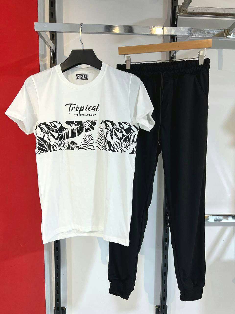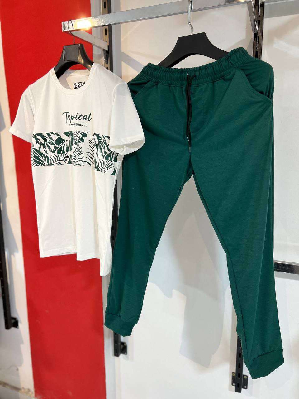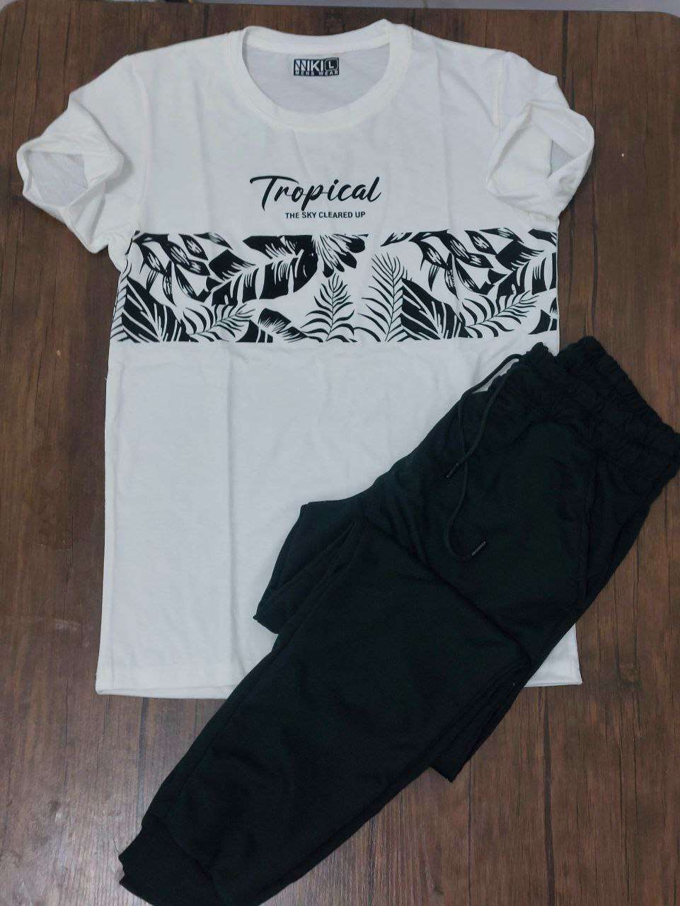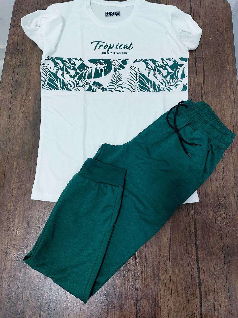 ترنج الصيف Tropical - خامة التيشيرت برسولا قطن البنطلون ملتون ليكرا  اعلي تجهيز - طباعه سلك سكرين - الالوان: اسود - كحلي - زيتي - المقاسات   ( L- XL - XXL ) - التلبيس: -L    55 kg  : 70kg