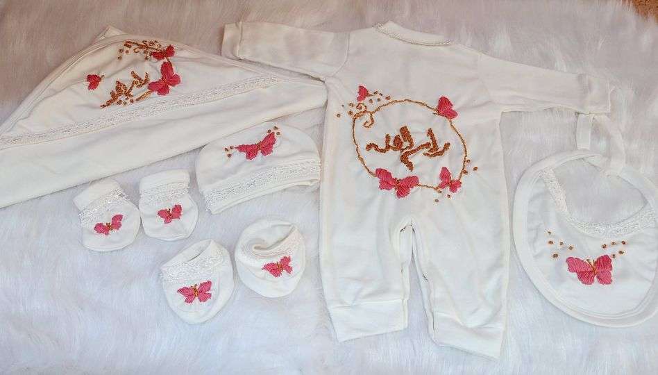 بدلية بيبي هاند ميد بالكامل خامه قطن مستورد 6 قطع تطريز كامل متاح بأكثر من تصميم