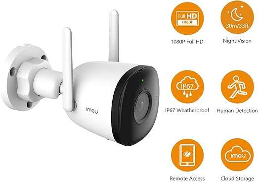 كاميرا مراقبة خارجية 1080P، تقنية كشف الحركة البشرية بالذكاء الاصطناعي، كاميرا بشكل رصاصة مقاومة للطقس بتصنيف IP67 لمقاومة المياه والغبار،كاميرا واي فاي برؤية ليلية 30 متر،فتحة اي مو سحابية/بطاقة SD