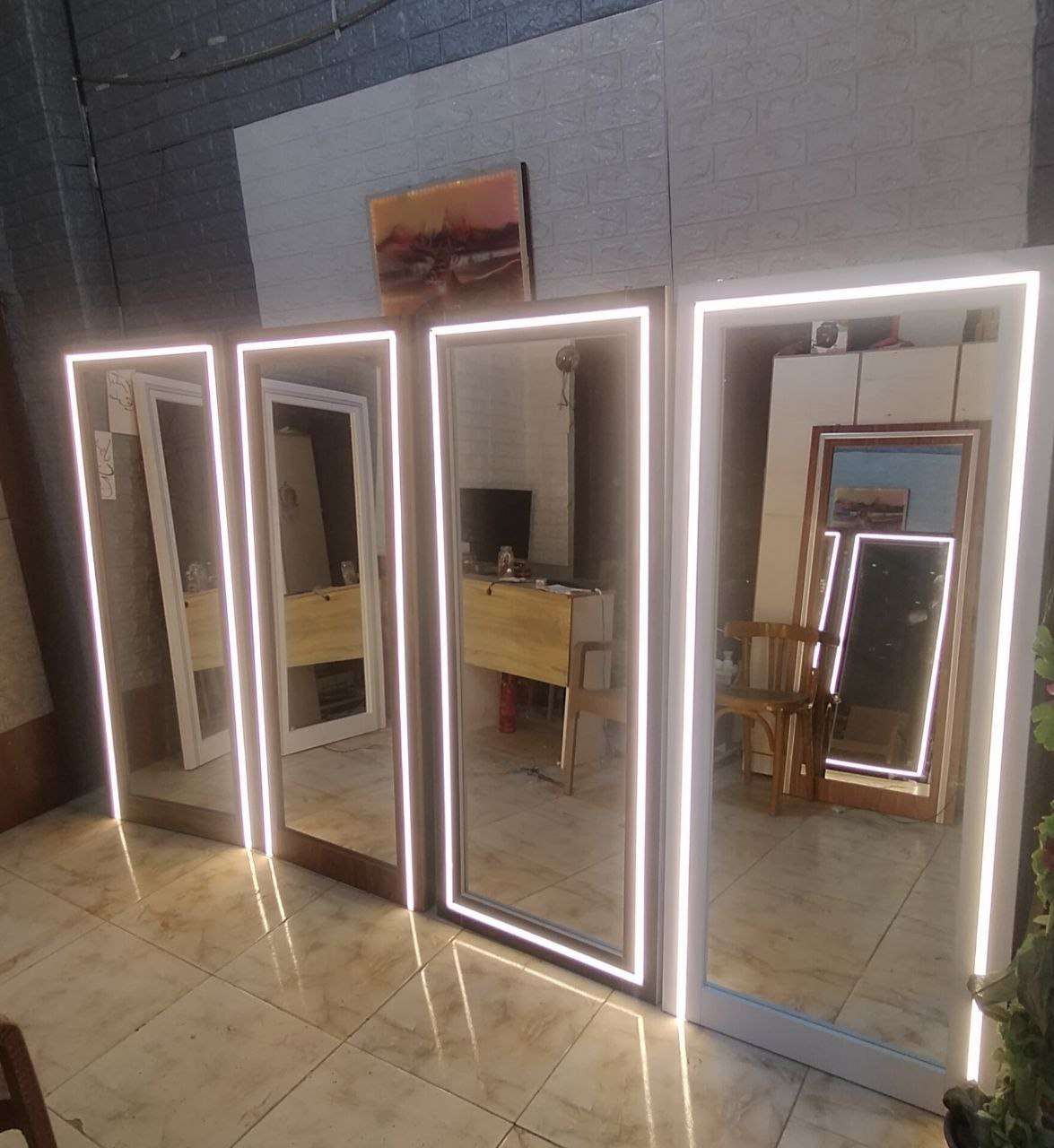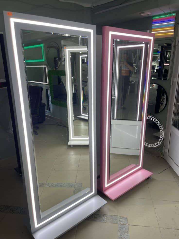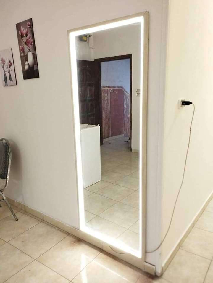 مراية مضيئة مقاس 75*180 لزوم التصوير والتريندات ليد بروفايل بديل اللمبات وامان اكتر ع الاطفال اضاءه شديده ومتوزعه بالتساوي من الاول للاخر خشب Mdf تايلاندي واخد طبقه ملاميين باللون معالج ضد الرطوبه و