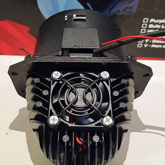 Vahid E7 عدسات ليزر جسم الومنيوم كبير للتبريد مروحة تبريد كبيرة 53 واط في الواطي 62 واط في العالي قاعده قلاووظ للتثبيت بدون تعديل في الفانوس بترمي معاك لمسافة 500-700متر اضاءه ممتازه بال
