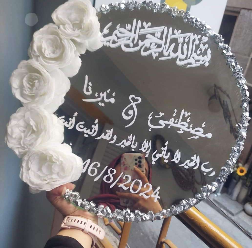 مرايا 30سم/ 35سم متاح تزودة وردة وتكتب على مرايا
