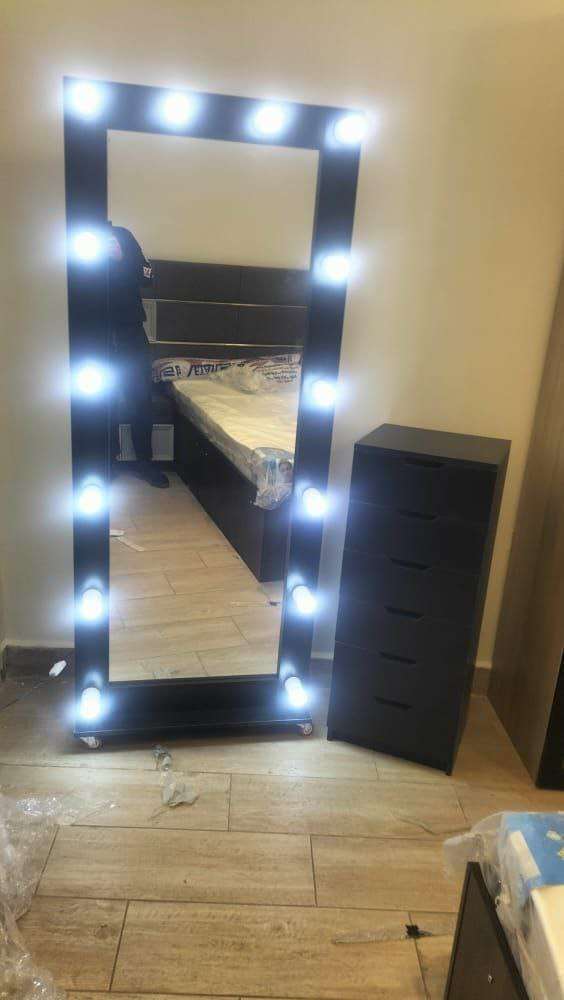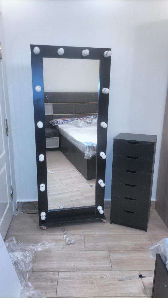 مراية انيقه لتحقق من اطلالتك مزوده بوحده ادراج لتساعك علي تنظيم اغراضك المقاس : عرض 2x1 مرآة 180* 80 كومود 6 درج ارتفاع متر عمق ٣٥ عرض 40 خشب Mdf تايلاندي واخد طبقه ملامين باللون