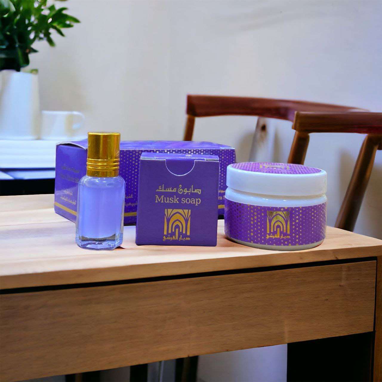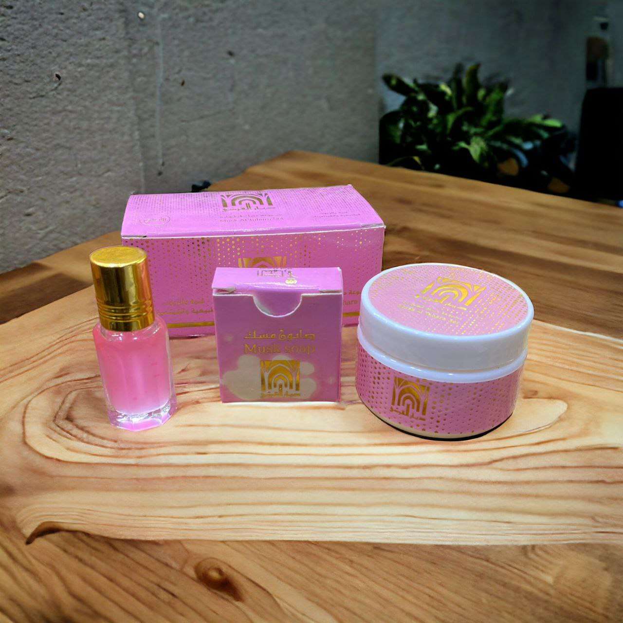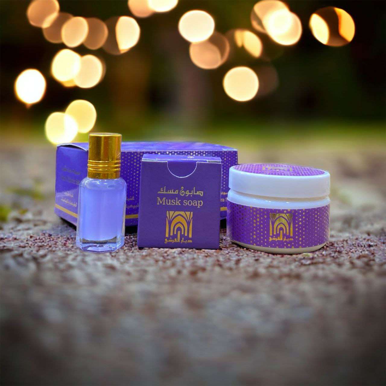 تعالووووو شووفو 😉 ريحتها بتجنن مجموعه مسك الطهارة 😘😘لو انتي متجوزه لازم تجربيها ولو عروسه وبتجهزي لازم تكون في شوارك مجموعه مسك الطهاره ديار القرشي مكونه من المسك + الكريم + الصابونه * تعمل