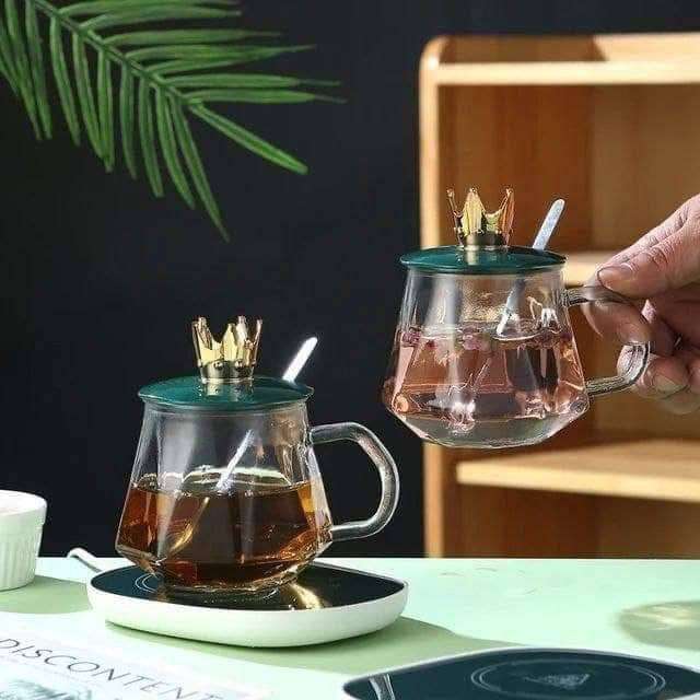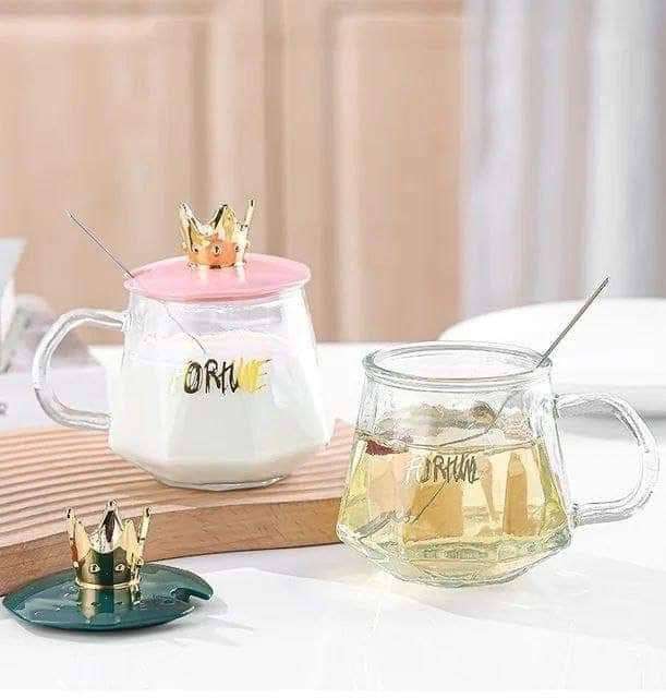 مج التاج الذهبي ❤️ مج تاج وجماله مج زجاج غطاء إكليرك تاج ومعلقة استانليس نفس شكل الصورة بالظبط السعه 300 مللي