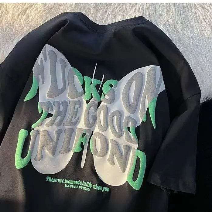تيشرت الفراشة طباعة فوم بارز خامة سمر ميلتون تقفيل متناسق لارج من 50 ل 65 اكس من 65 ل 80 2 اكس من 80 ل 95