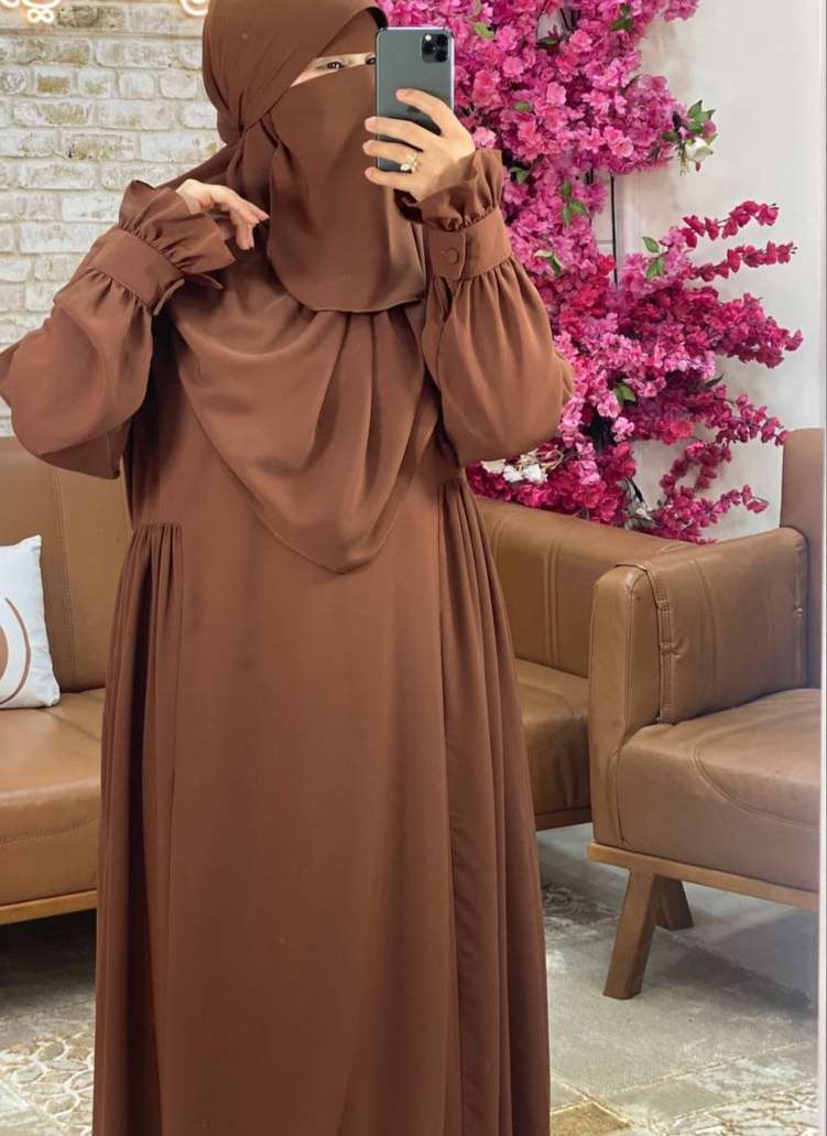 كود 16 طقم فرنسي ٣ قطع ( دريس و خمار و نقاب ) الخامه رويال كوري تلبيس ل 85 كيلو و طول 165 سم