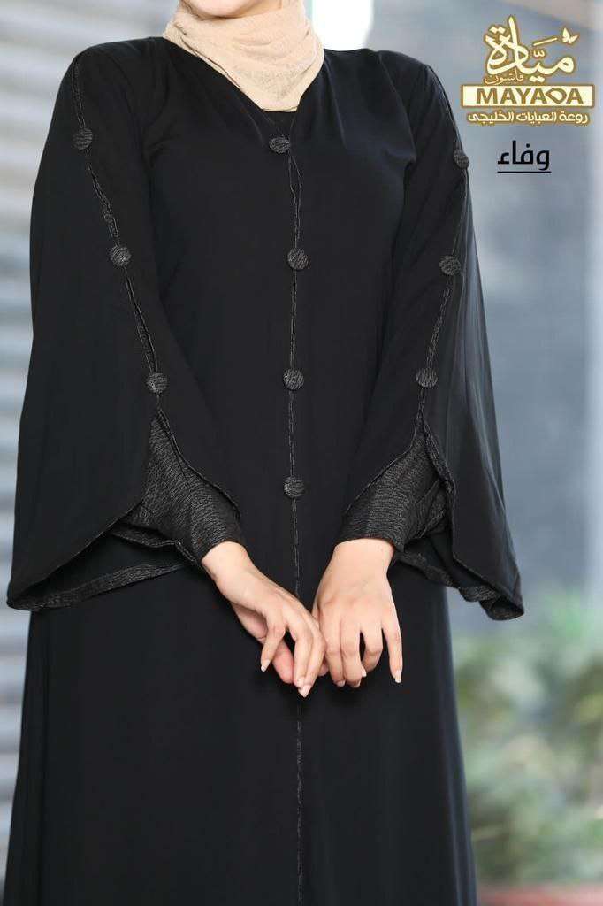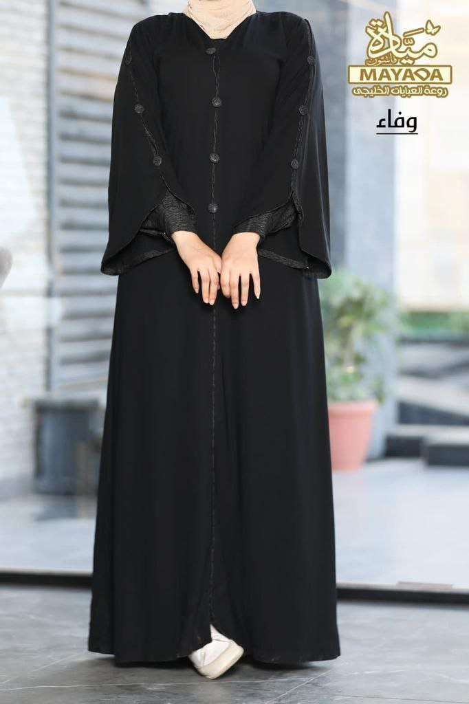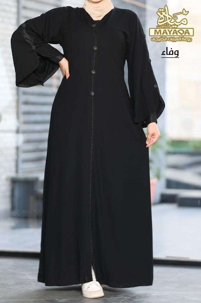 تكرار من براند " ميادة فاشون " 2023🔥 كن بسيطاً ، تكن أجمل 🥰 الموديل " وفاء " ♥️ عباية بديزاين شيك فضفاضة ومريحه في اللبس ، مميزة ب2 كم كم خليجي واسع وكم إسوره كبسوله 🙈 ماتريال :-