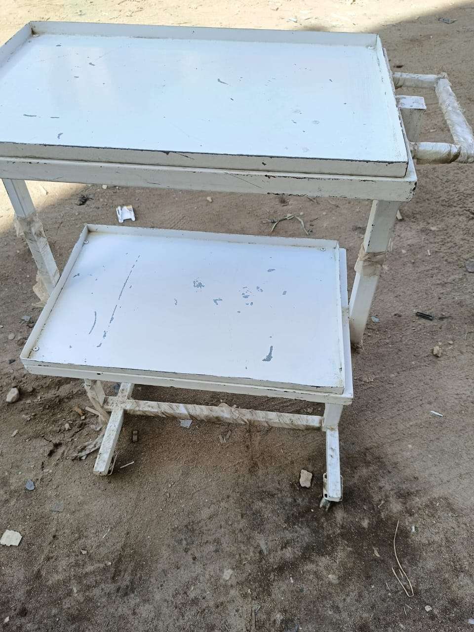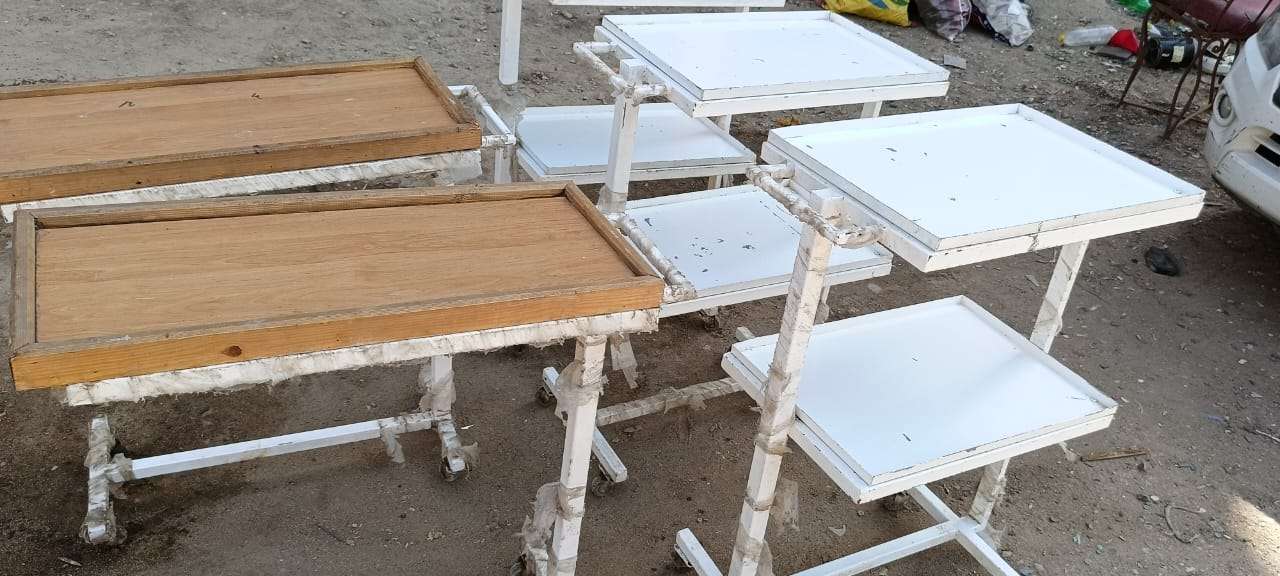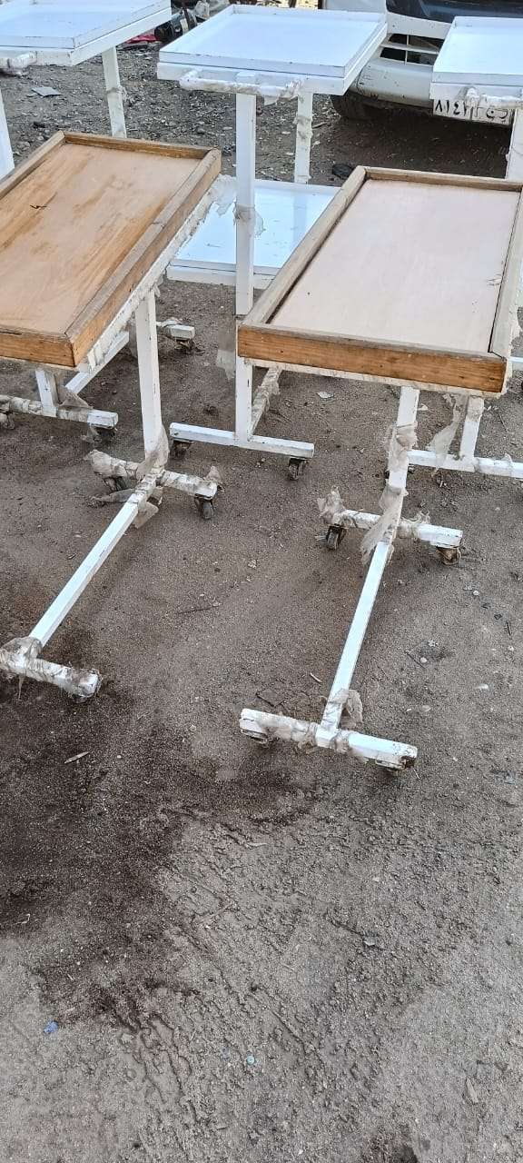 عدد ٥ طرابيزه طبيه متحركه معدن محمل جدا بالكامل تصلح لعده اغراض