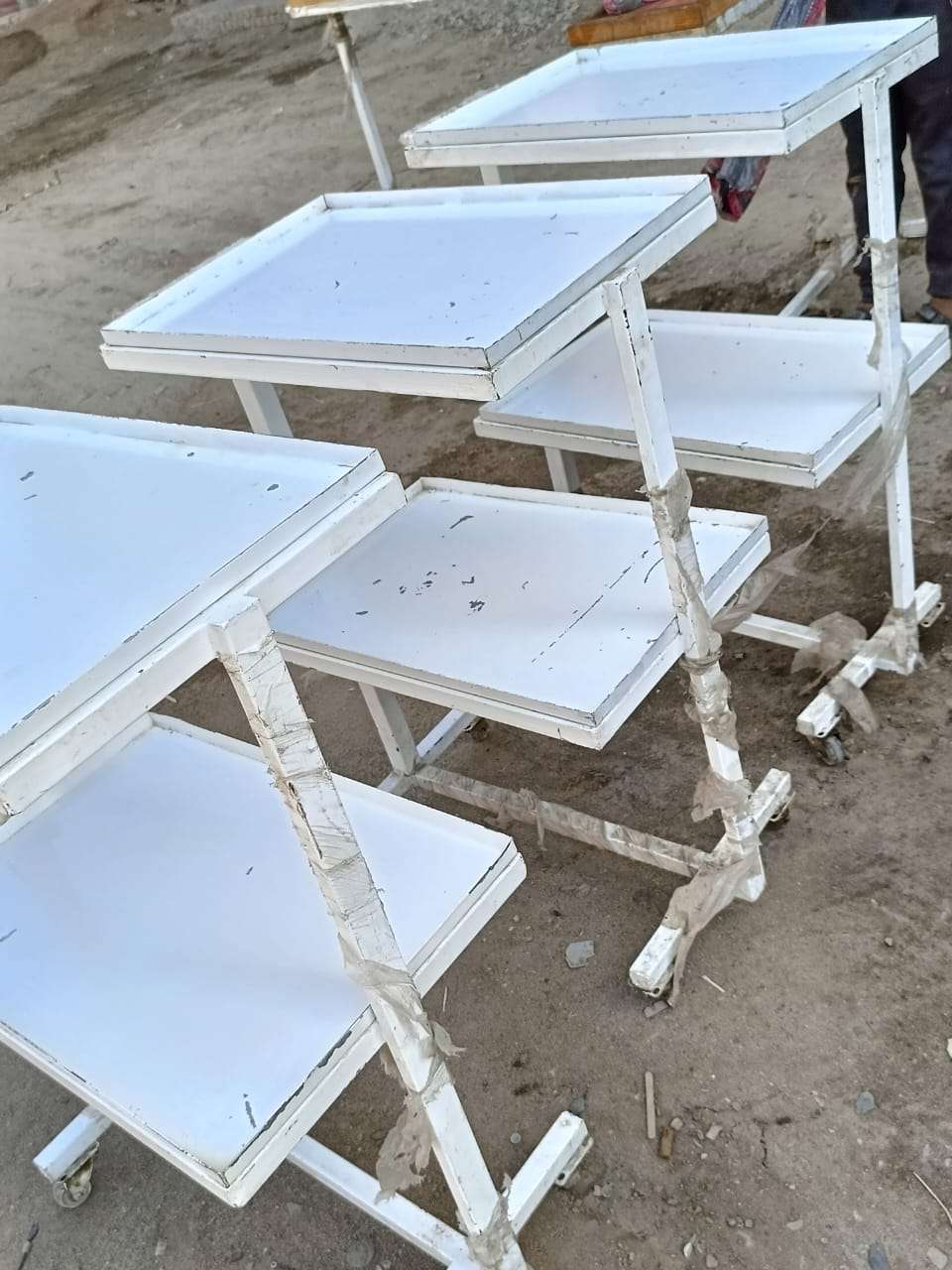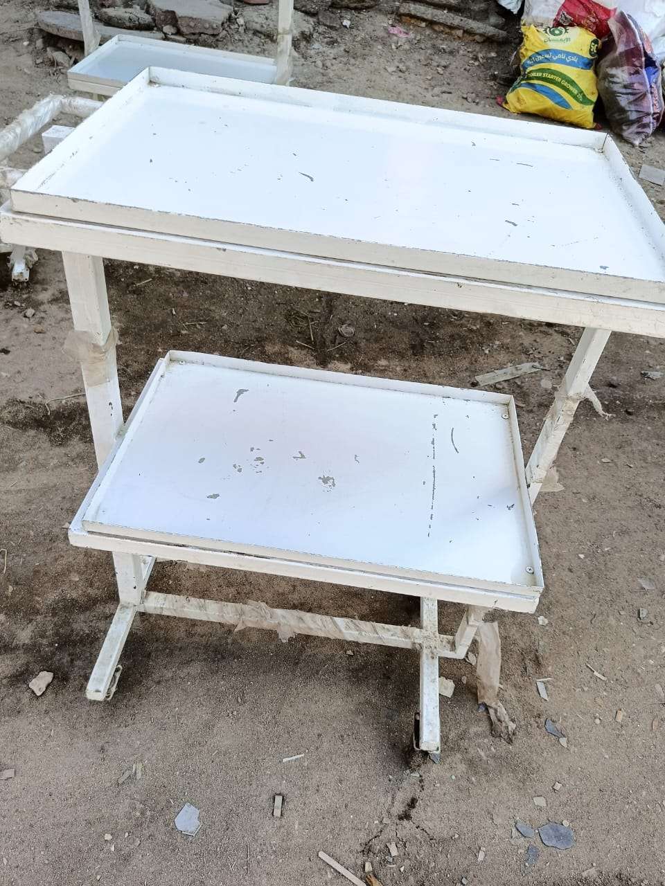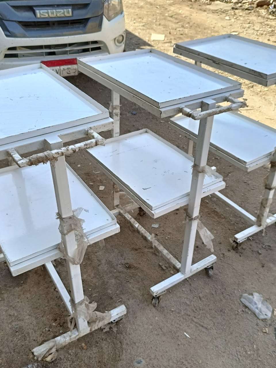 عدد ٥ طرابيزه طبيه متحركه معدن محمل جدا بالكامل تصلح لعده اغراض