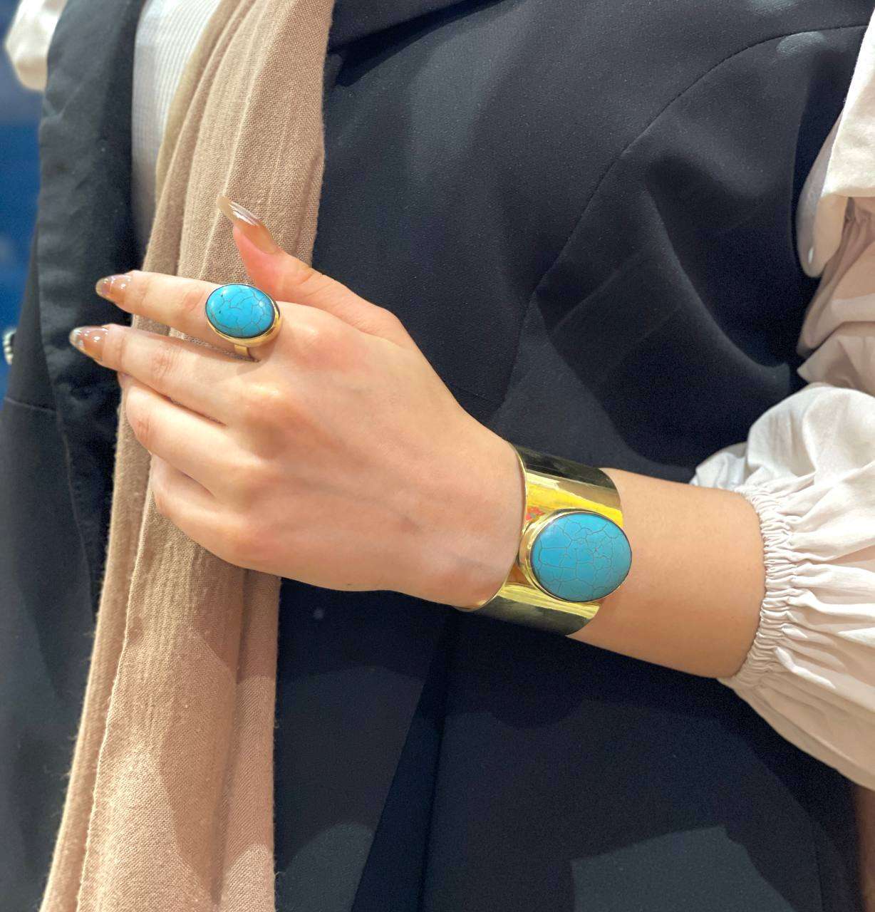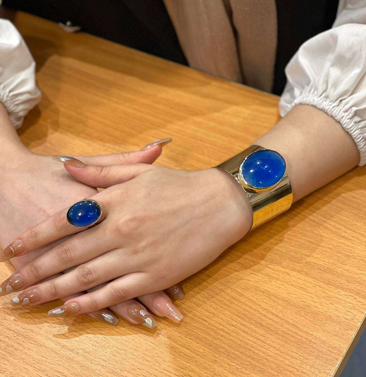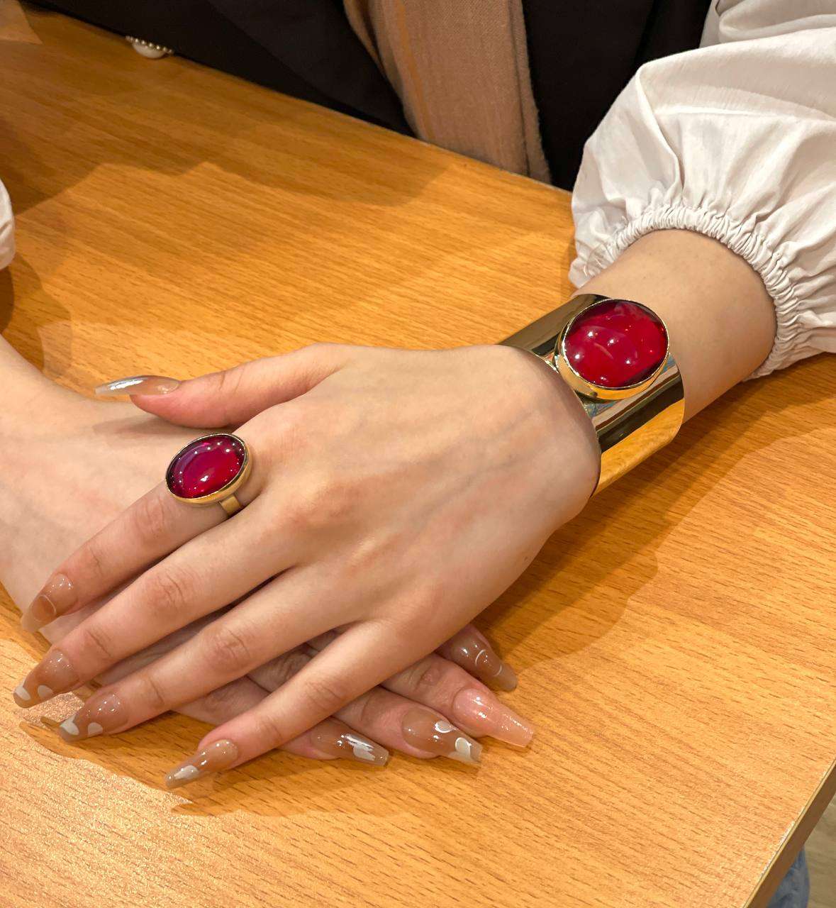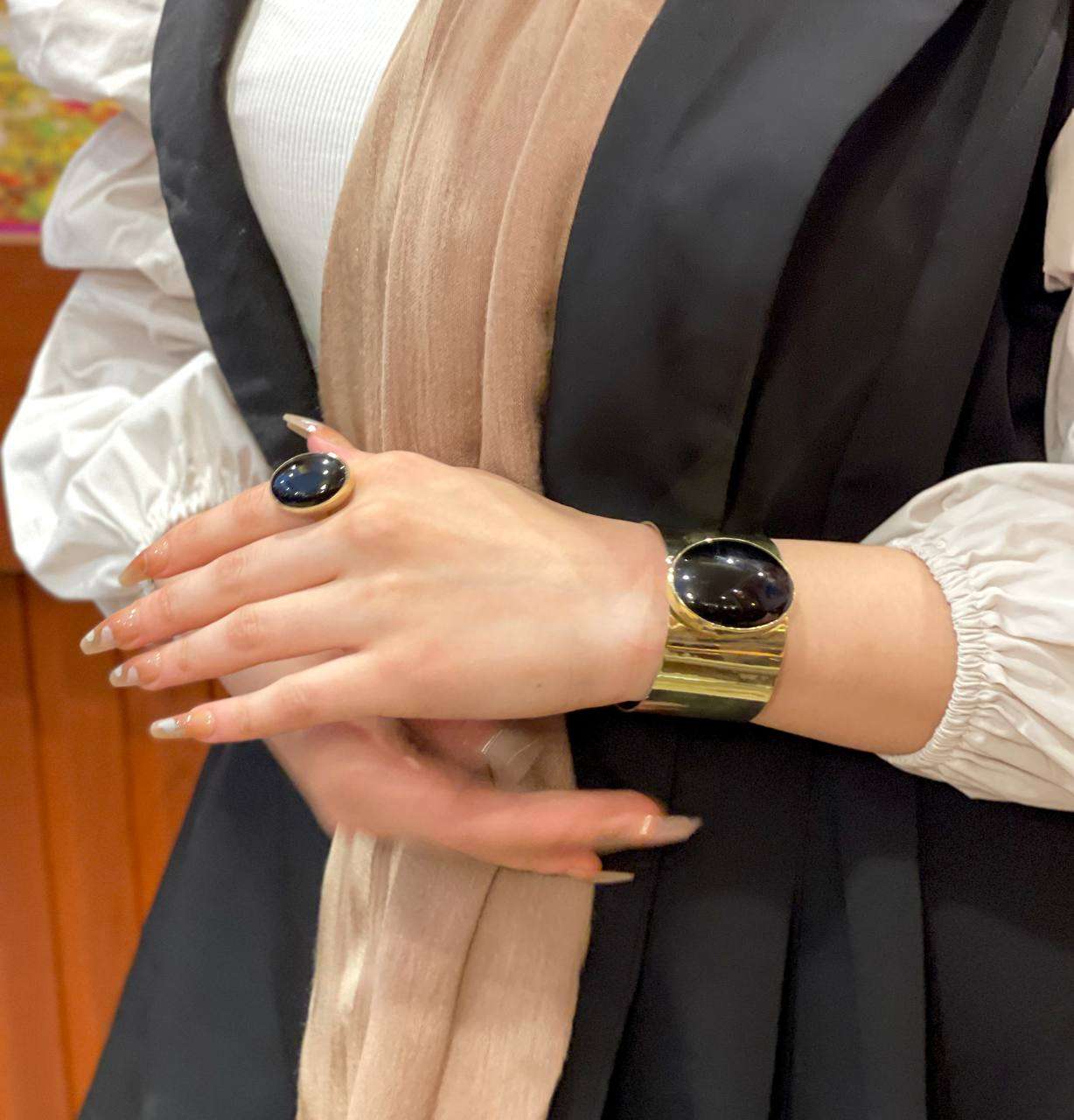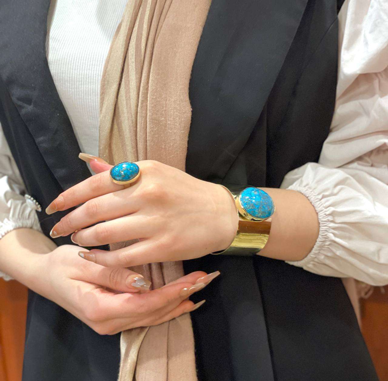 طقم نحاس بيور مطعم بالاحجار العقيق اسورة وخاتم