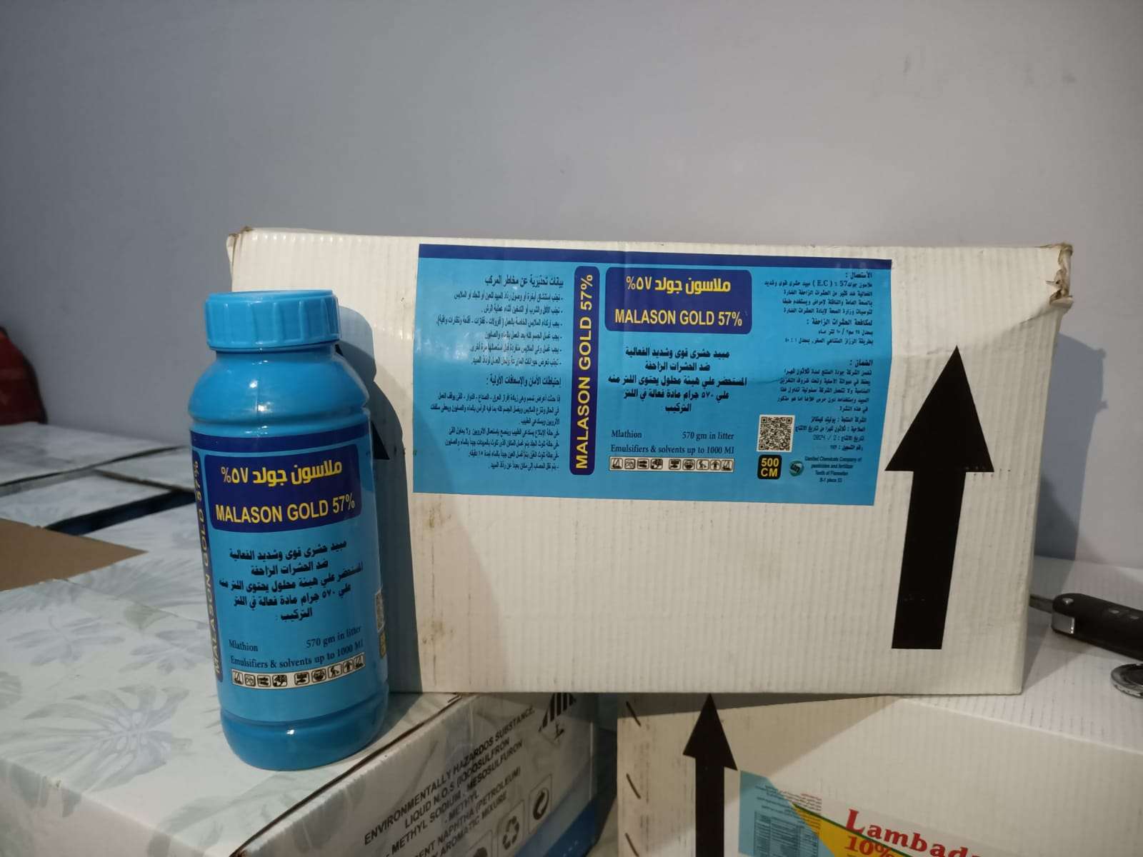 مبيد للقضاء على المن والذبابه البيضاء، مبيد قوي ومشهور للقضاء على ذبابه الفاكهه، يتم خلط 30سم3 على 20 لتر ماء ويتم الرش باستخدام الرشاشات الظهريه الوصف ملاثيون 57% ملاسيون مبيد ملاثيون للقضاء على ا