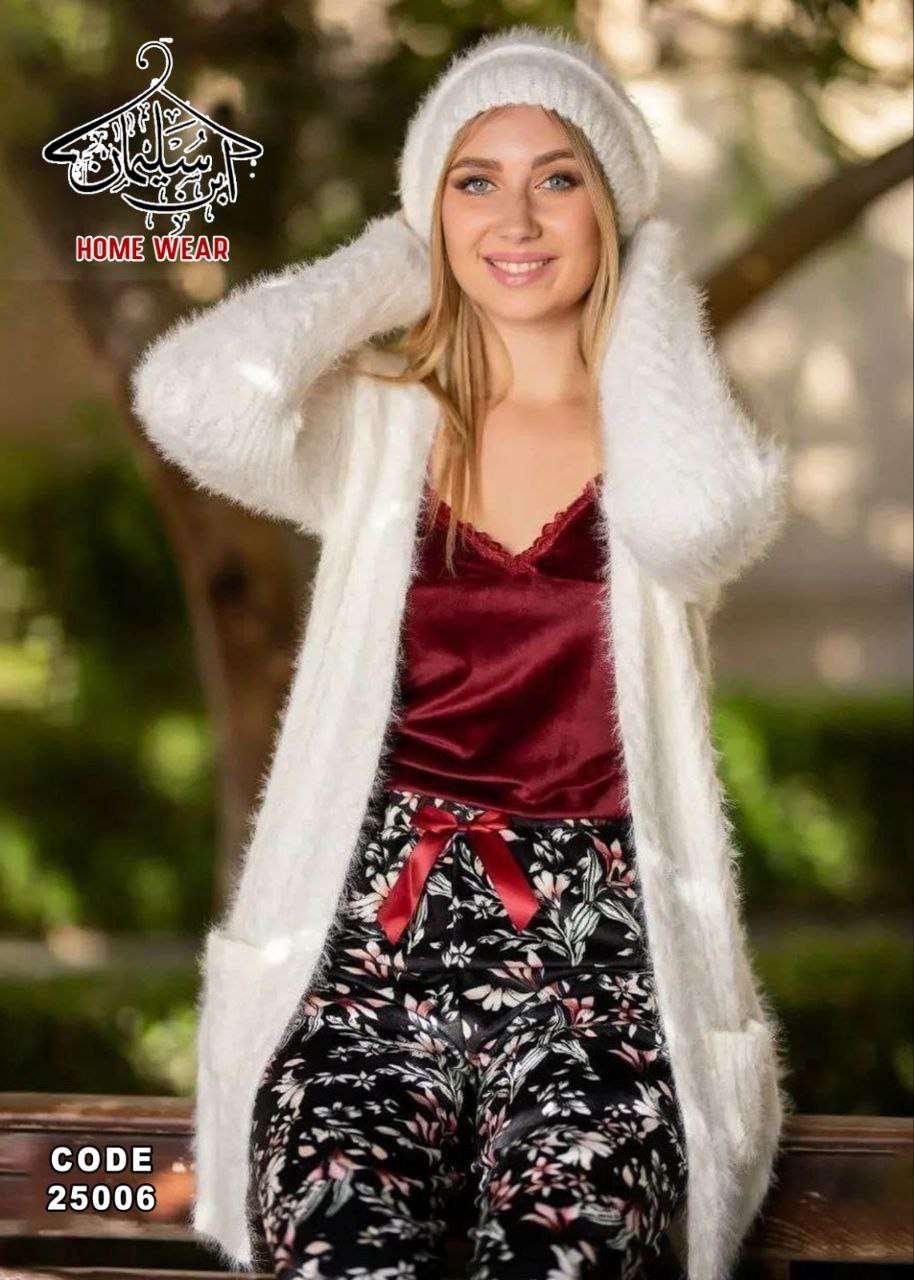 بيجامه ٣ قطع بنطلون وبدي حماله قطيفه هايدي وشين وجاكت بولار وشين