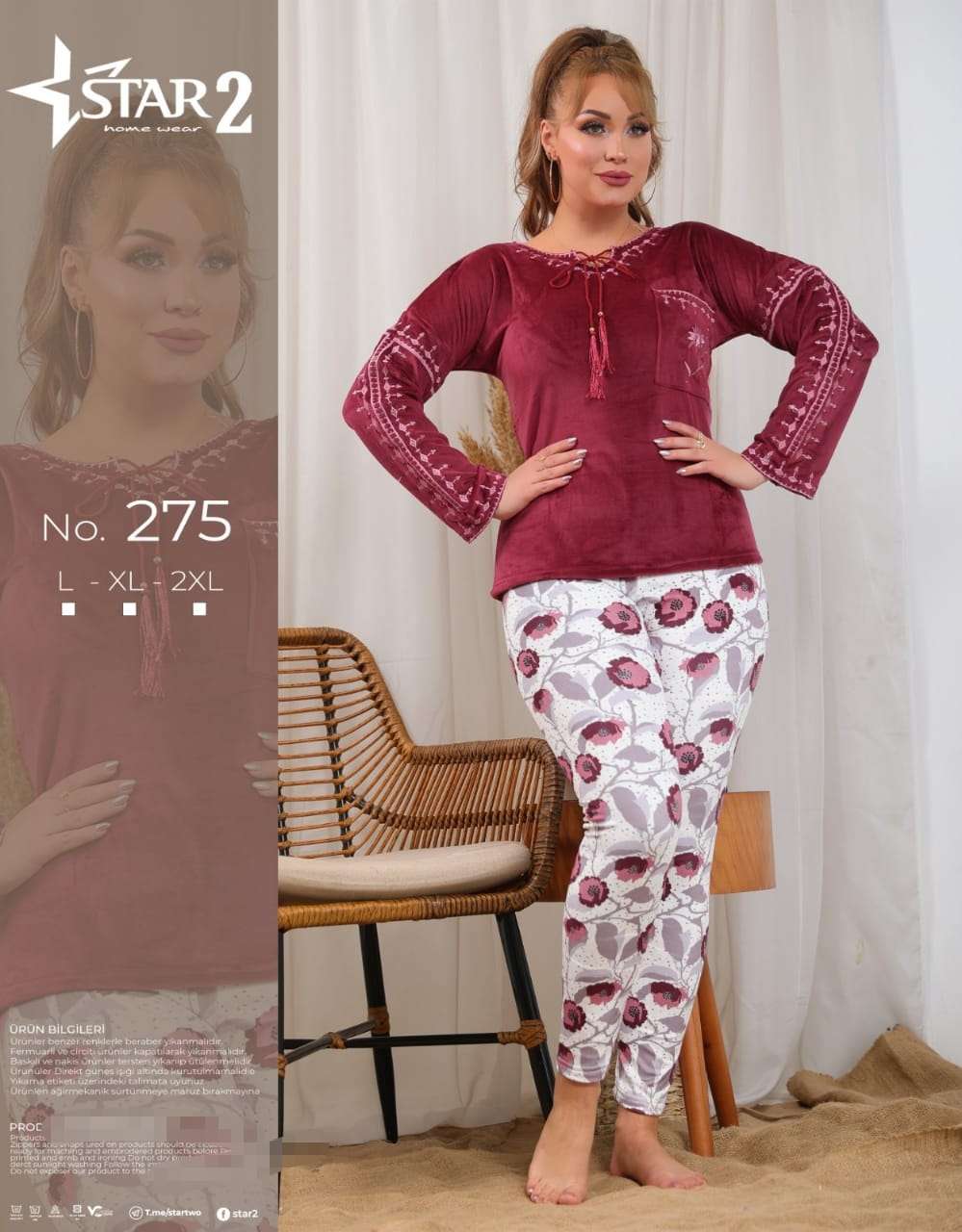 بيجامه قطيفه هايدي وشين مستورده مطرزه بخيط حرير L. XL. 2xl