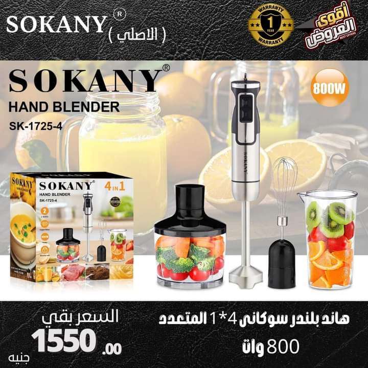 عندنا اقوى هاند بلندر ماركة سوكاني 4*1 قوه موتور 800 وات ستانلس ضمان لمده عام كامل الاصلي اقل من سعر السوق متاح دفع بالفيزا