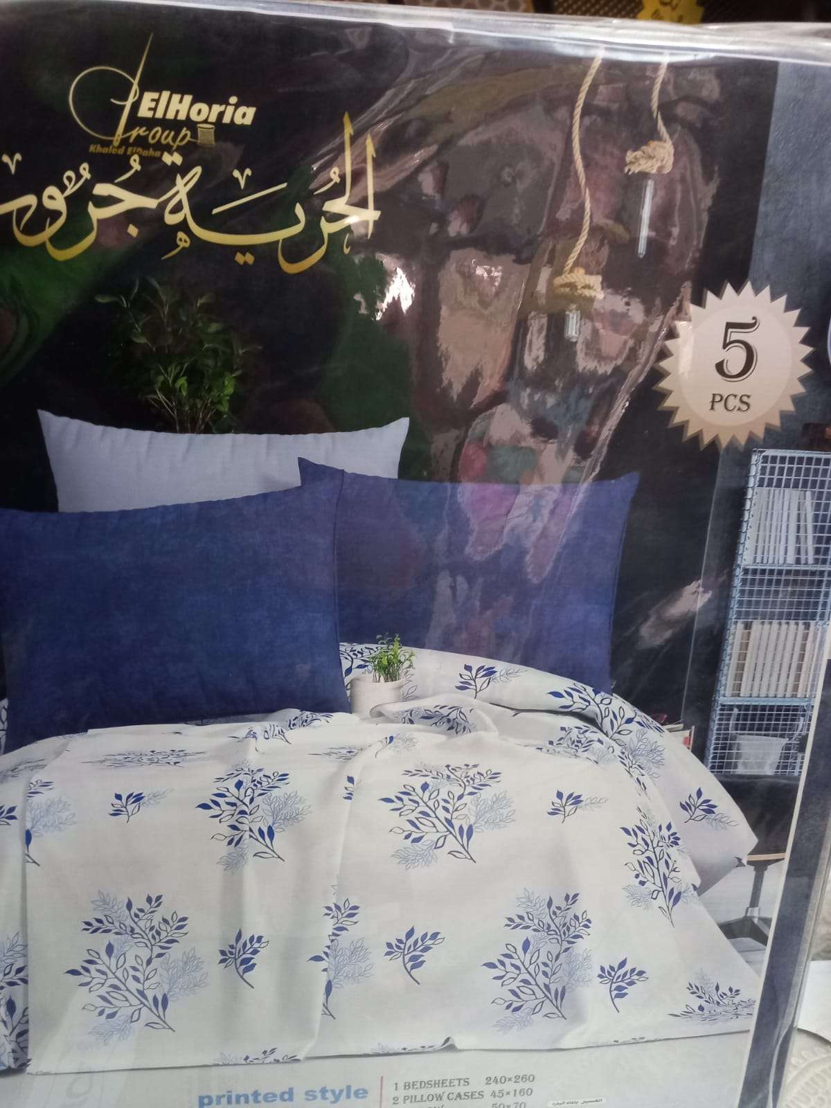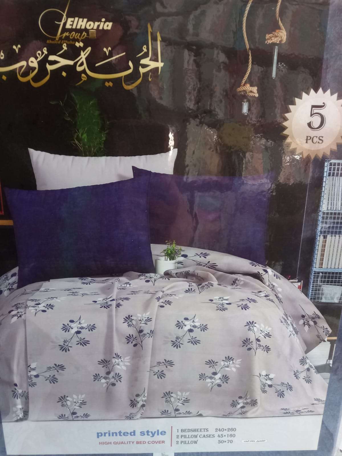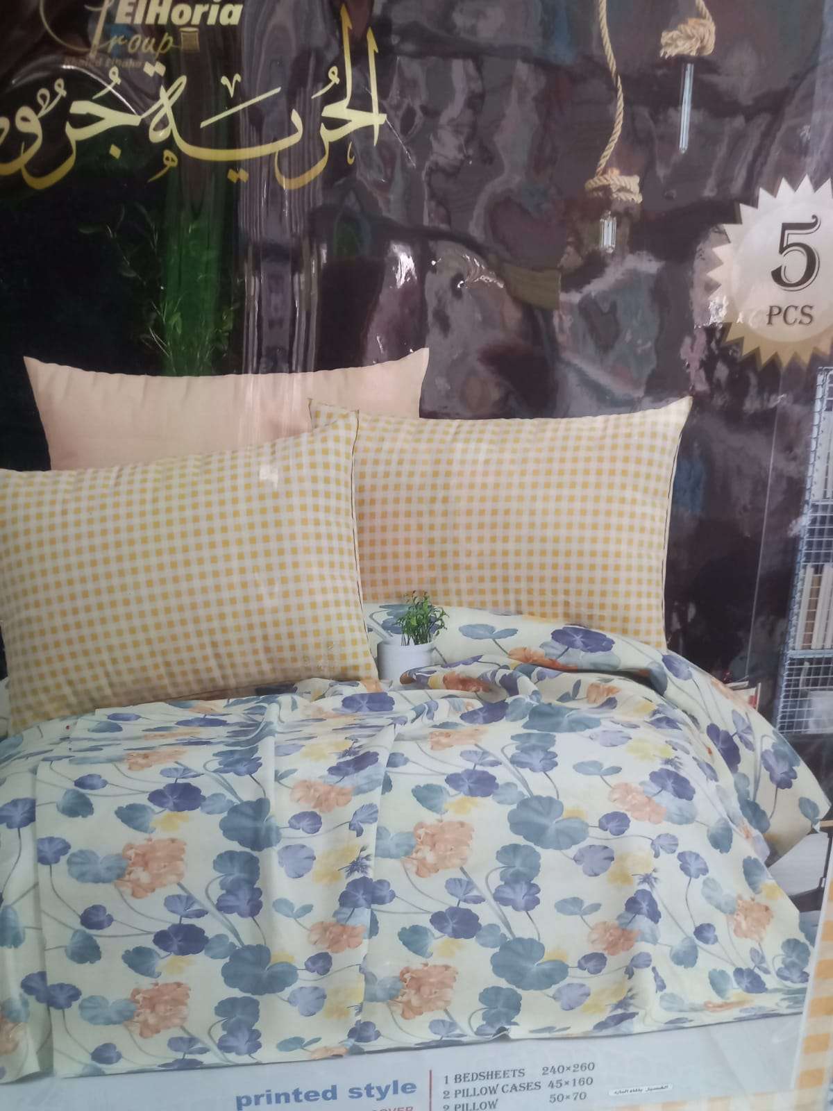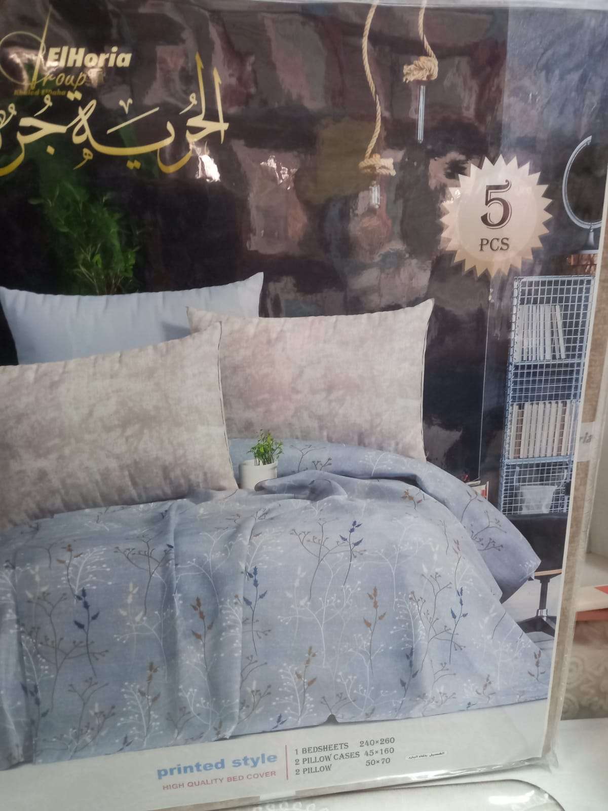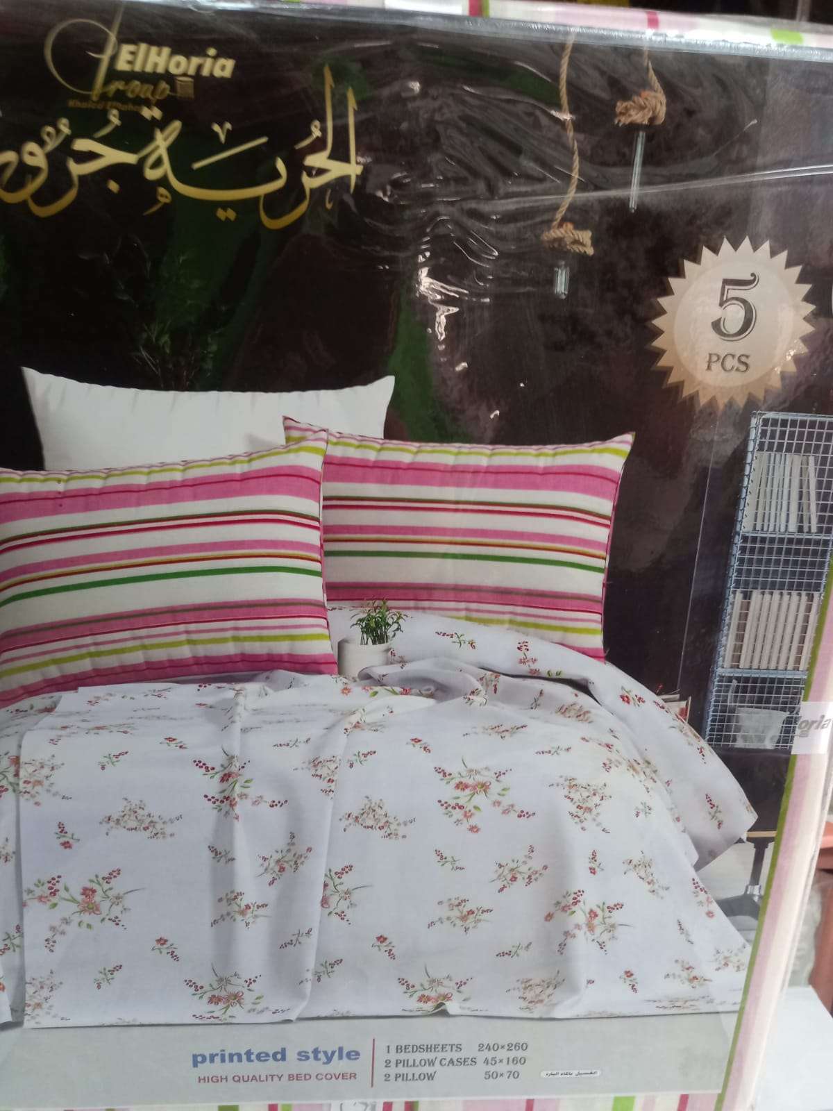 طقم ملايه الريه جروب 5 قطع للسرير الكبير240*260 2 كيس مخده 45*160 2خداديه 50*70