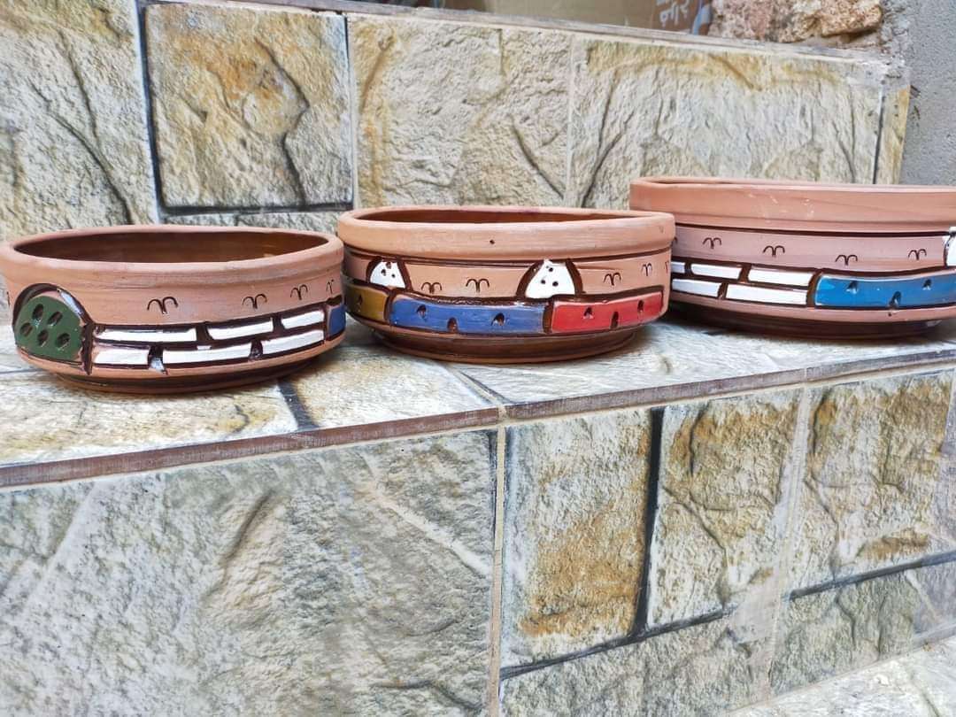 طقم صينية ريفي ٣ قطع فخار حراري صحي فرز أول.. درجة أولى مصنع من الطمي الأسواني لطهي وتسوية جميع أنواع الطعام.. يدخل الفرن ويوضع على نار هادئة مباشرة خامة عالية الجودة وتشطيب أكثر من رائع