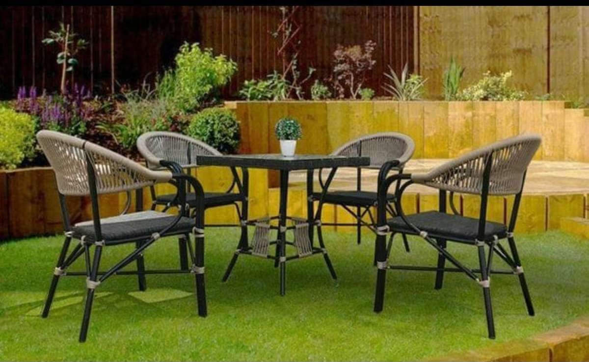 طقم كرسي ميكس ٤ كرسي بالترابيزة شاسيه حديد معالج ببودر ستاتيك مقاوم للصدا جميع الألوان متاحة وخامات مستوردة