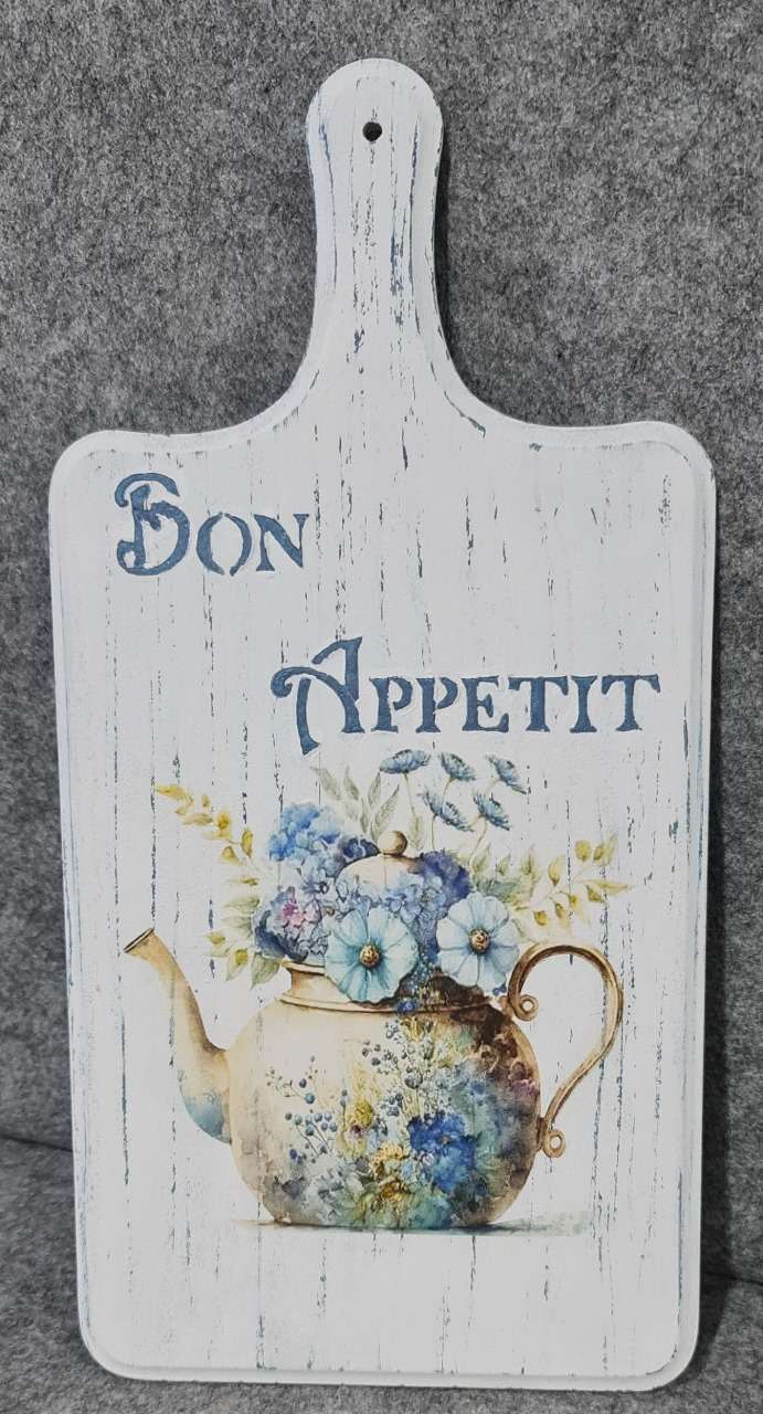 تابلوه شكل قطاعة مطبخ عليه كلمة "Bon Apetit"