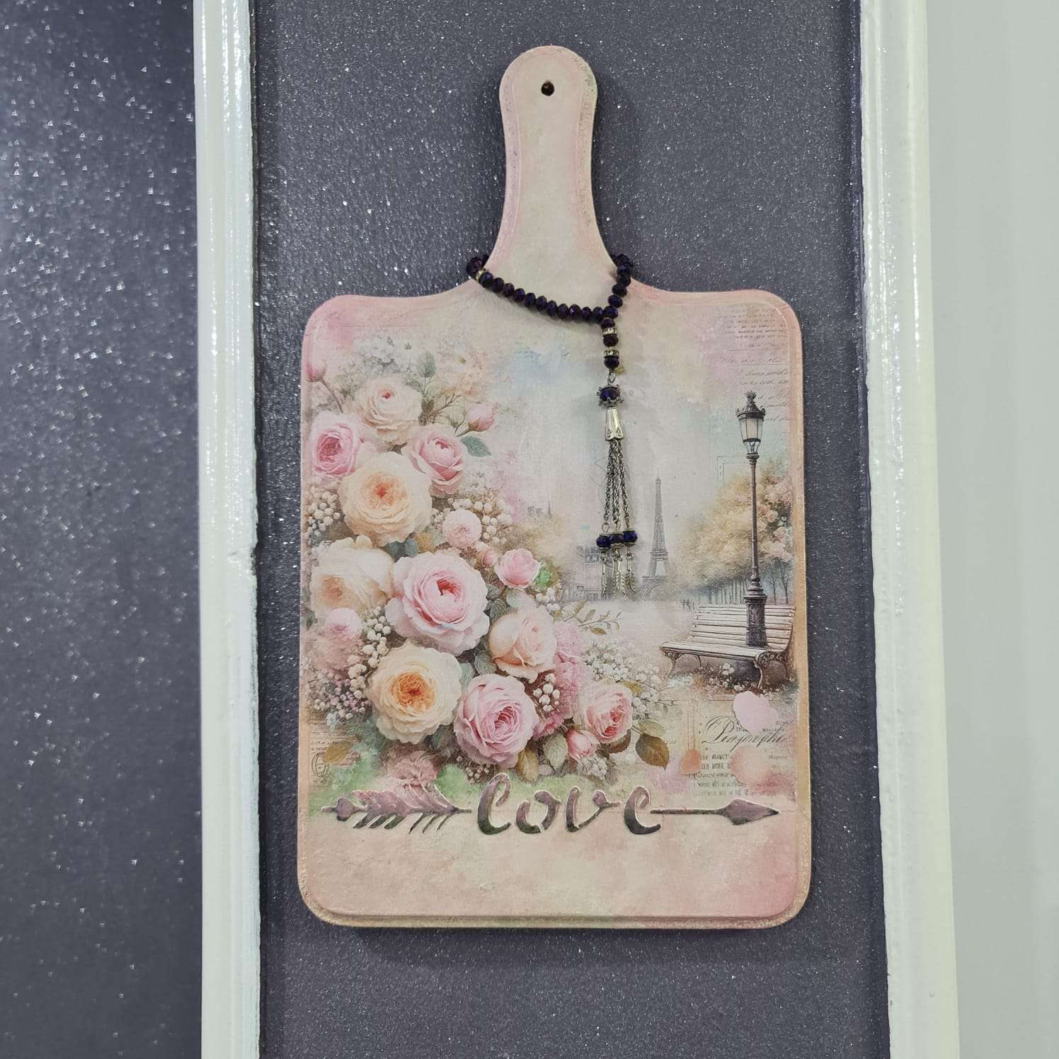 تابلوه شكل قطاعة مطبخ عليه منظر طبيعي لبرج إيفل مناسب جدا لتزيين حائط المطبخ متاح التنفيذ باللوان والتصميمات المفضله لديكم