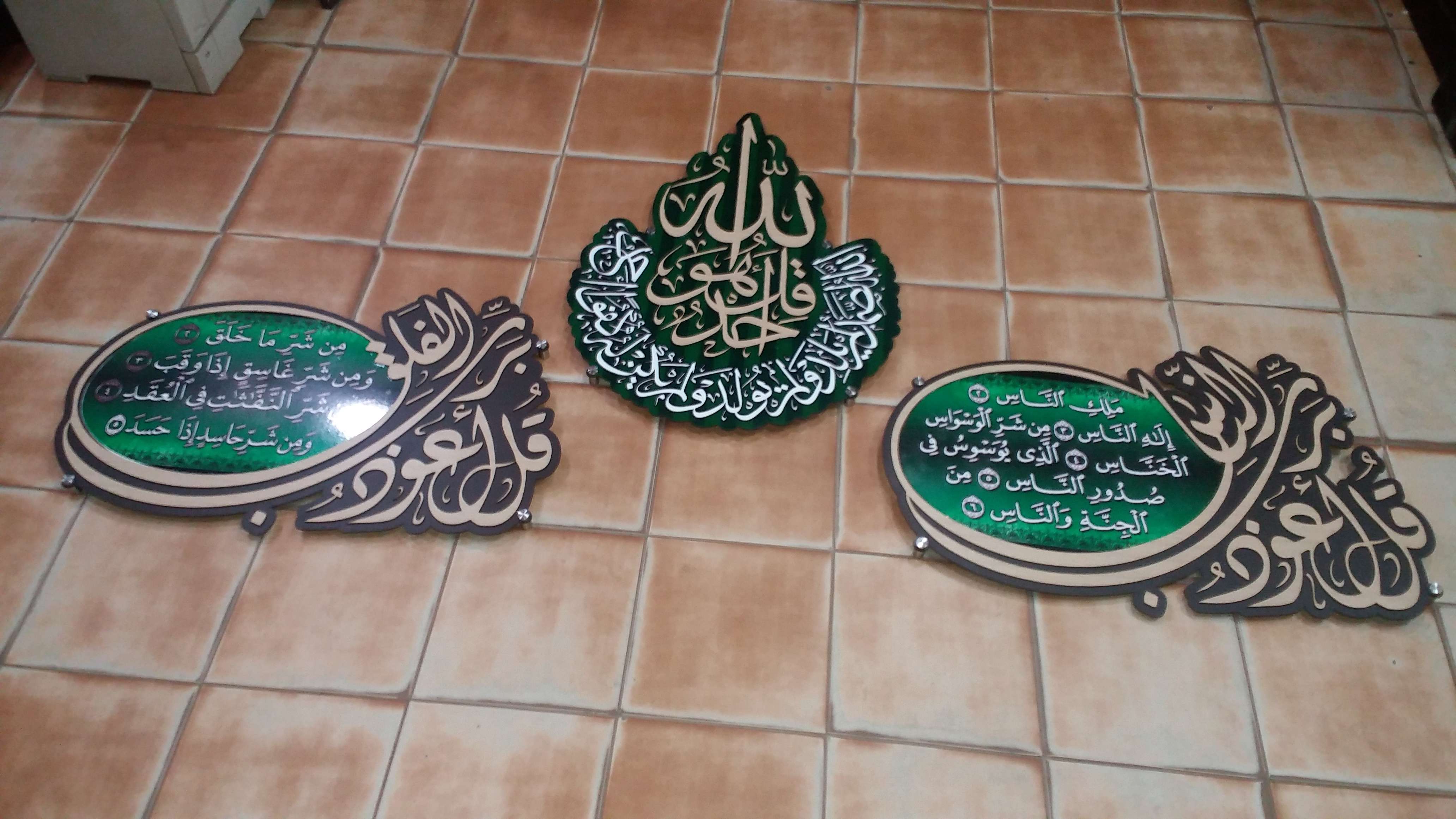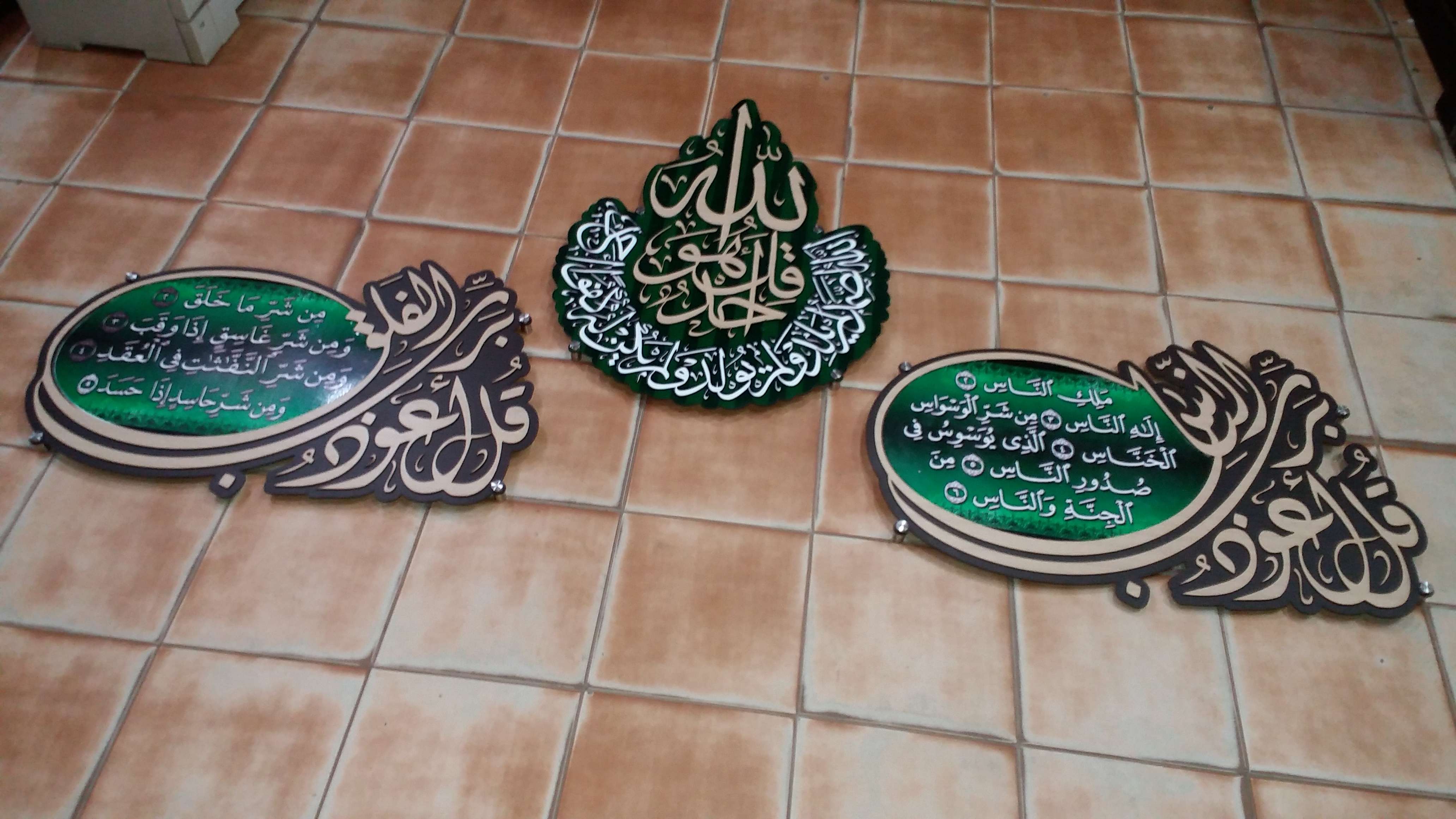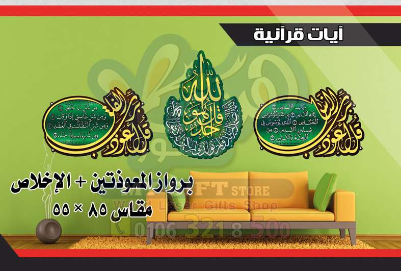 برواز المعواذتين والإخلاص مصنوع من الخشب MDF أجود الأنواع تخانة 3 ملى + طباعة الآيات مقاس 52 سم * 80 سم للبراوز الواحد