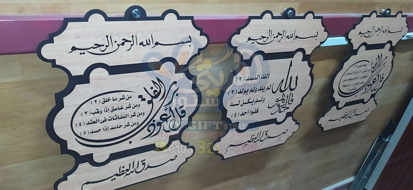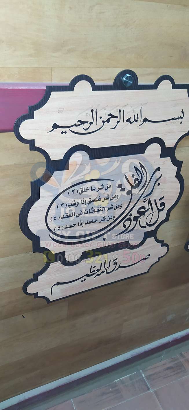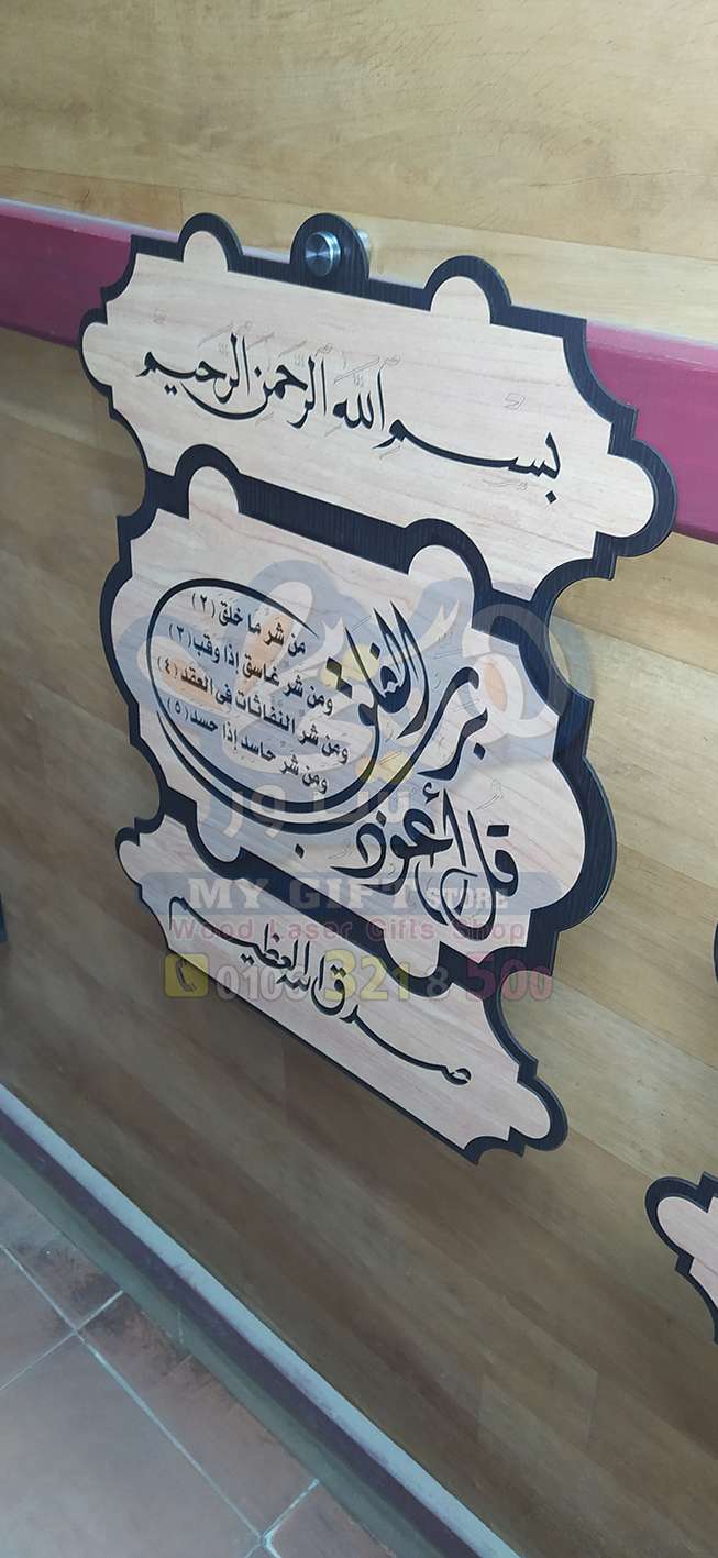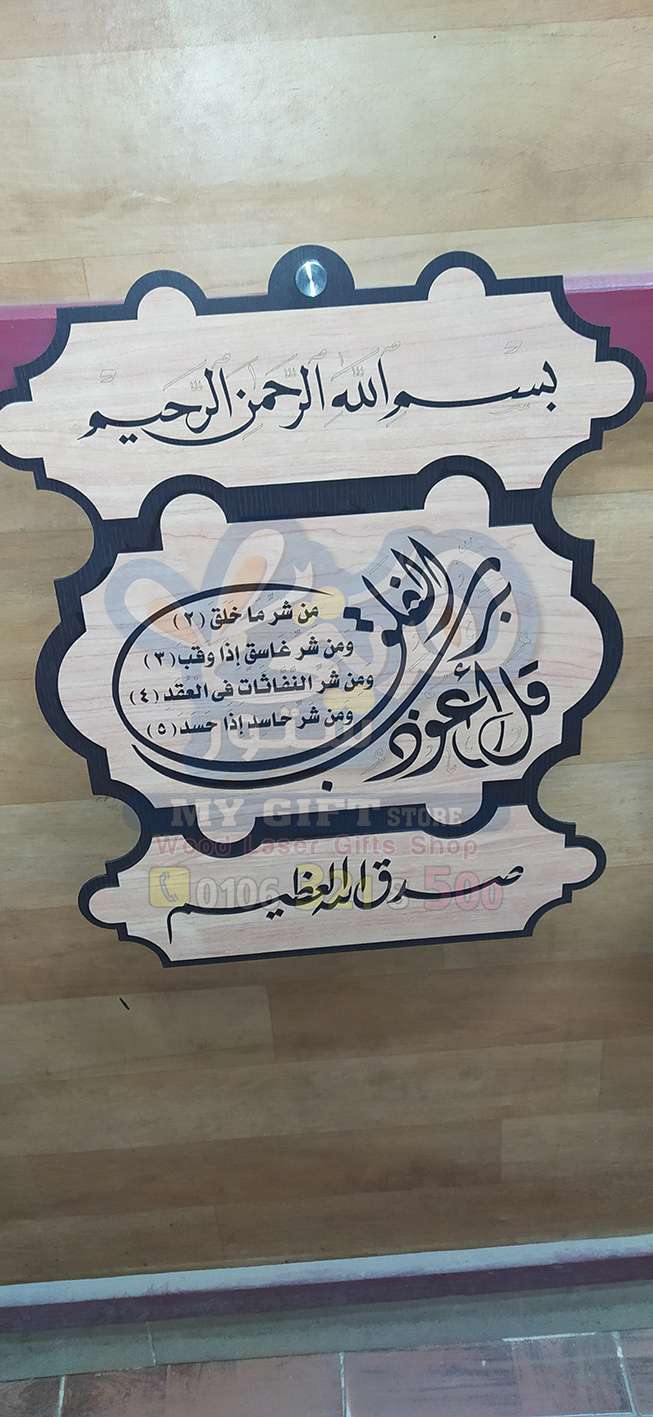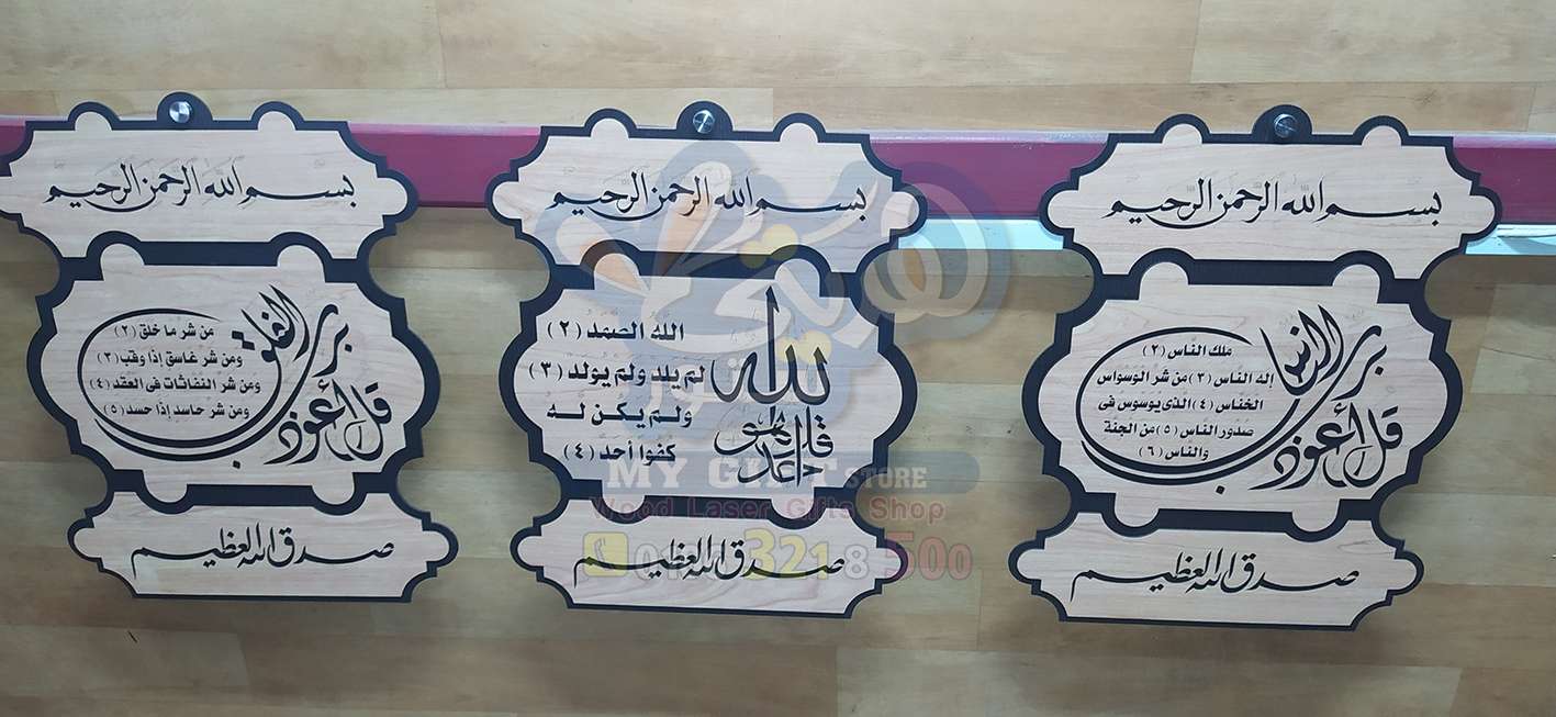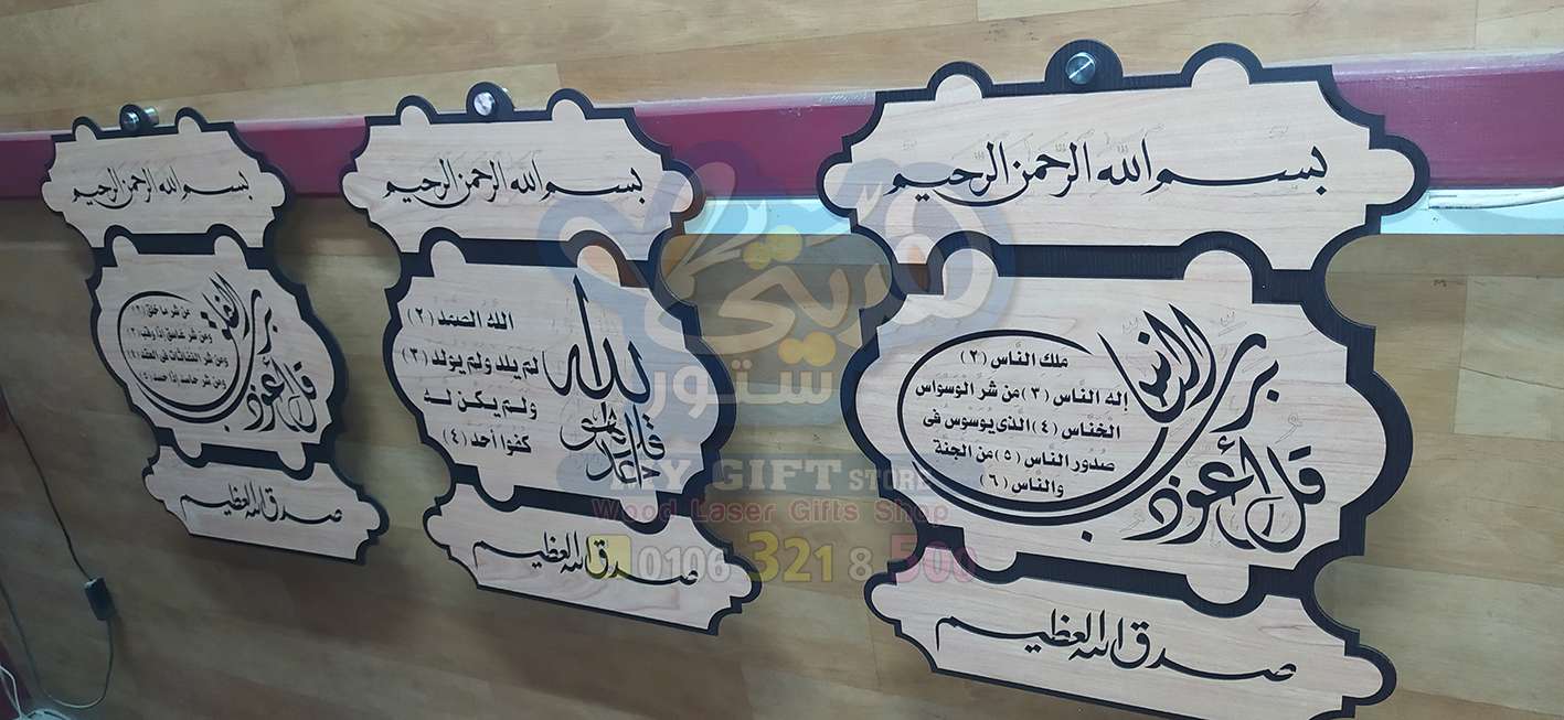 برواز المعواذتين والإخلاص مصنوع من الخشب MDF أجود الأنواع تخانة 3 ملى طبقتين مقاس البراوز الواحد 30 * 40