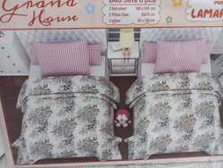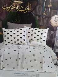 طقم طوكيو 5 قطع للسرير الكبير 1 ملايه مقاس 220*240 2 كيس مخده مقاس 45*160 2 خداديه مقاس 60*75