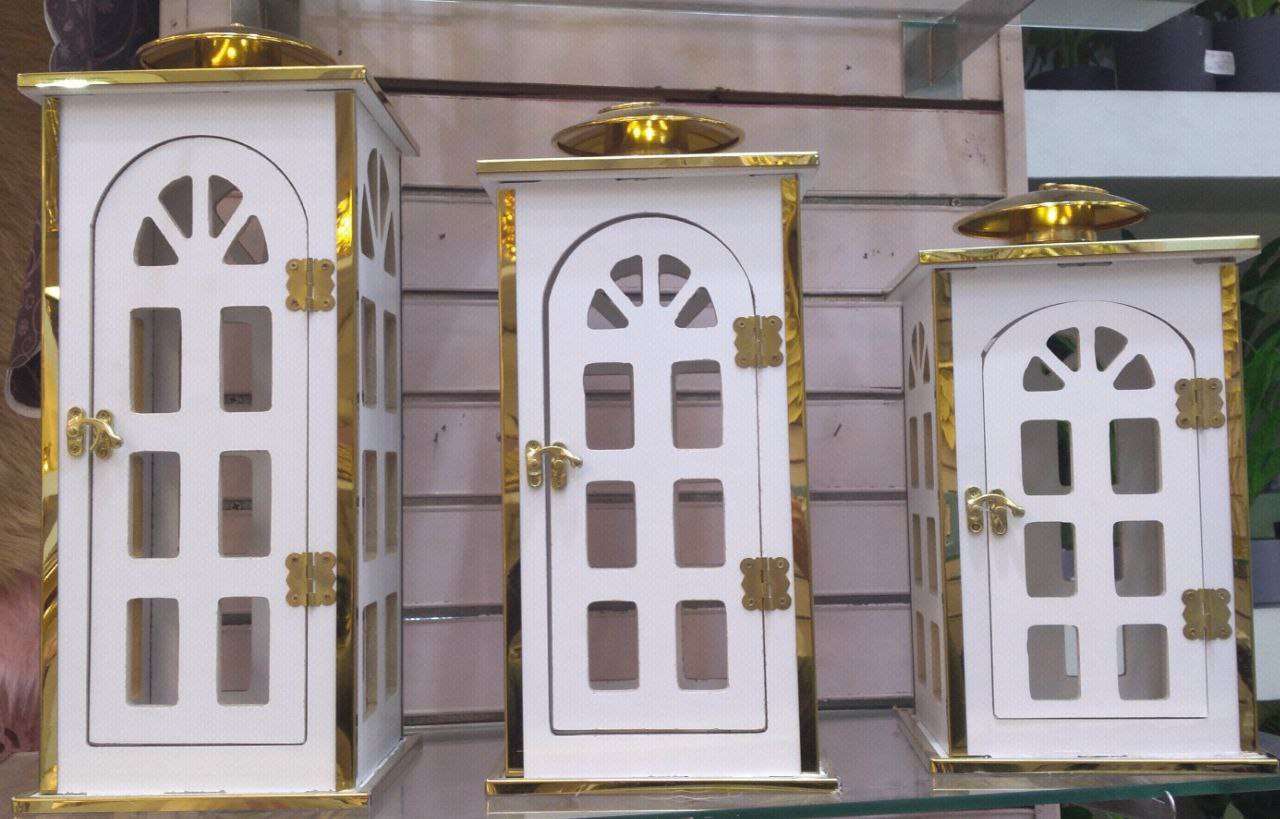 جدييييييييد 🙈 طقم فانوس ستالس فى خشب 👌👌 باب لسهولة وضع الشمع او الليد مقاس ك ٤٥سم مقاس وسط ٤٠سم مقاس ص ٣٥سم
