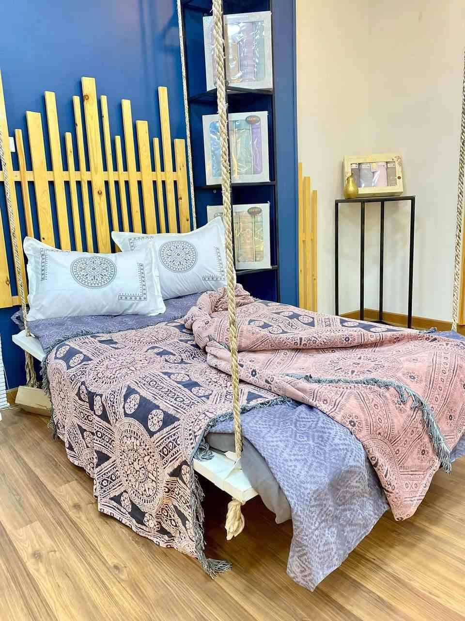 طقم كوفرتة + ملاية بيكا شراشيب ماري جولد سوان قطن صافي١,٨٠٠ج.م٨٧١