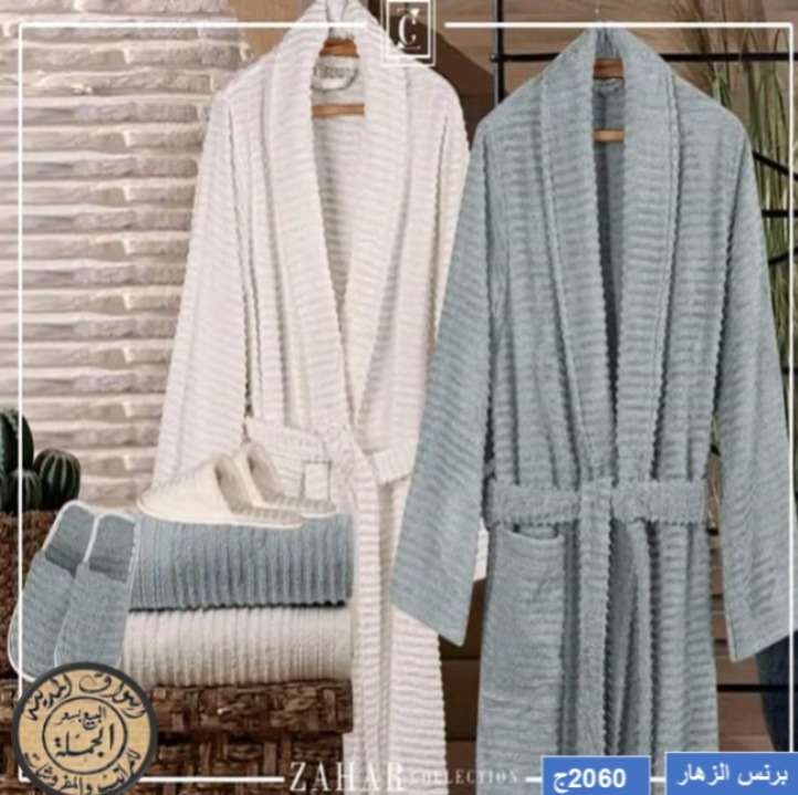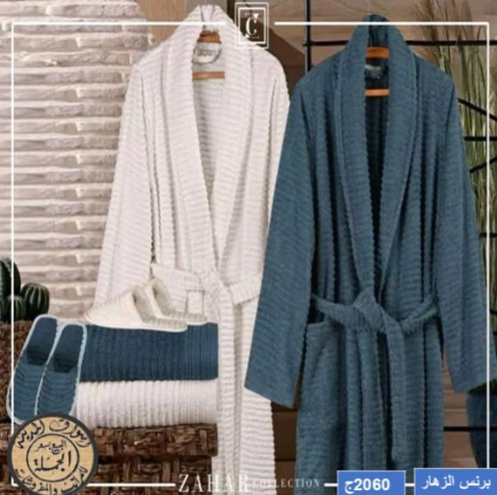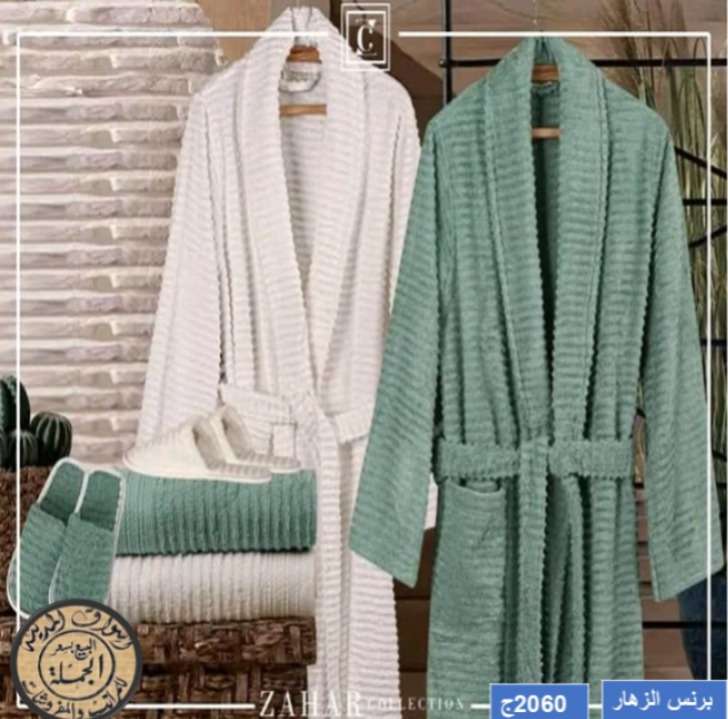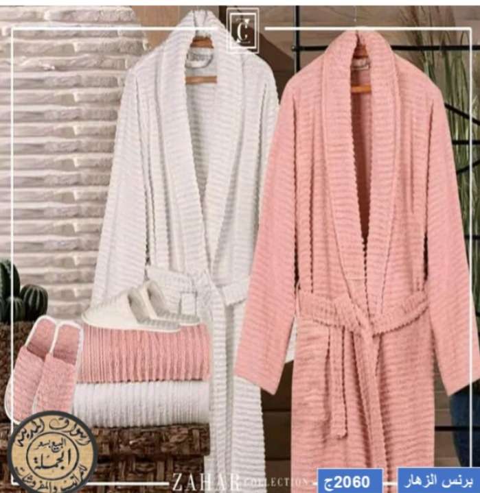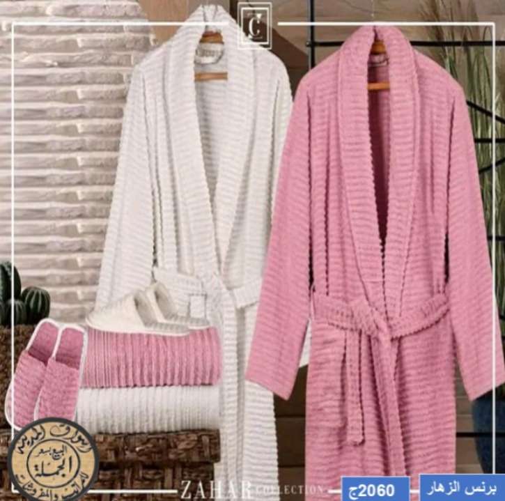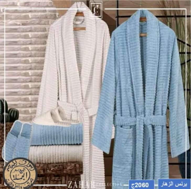 برنس الزهار قطن 100% 8ق دبل زوجي👰♀ 2برنس حريمي ورجالي 2فوطة قطن 90*50 2سليبر 2حزام