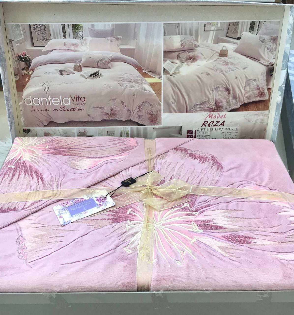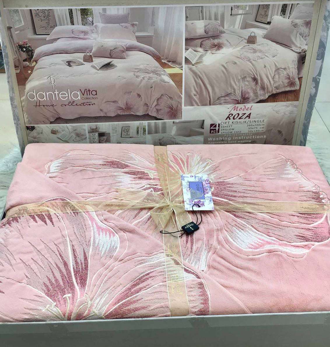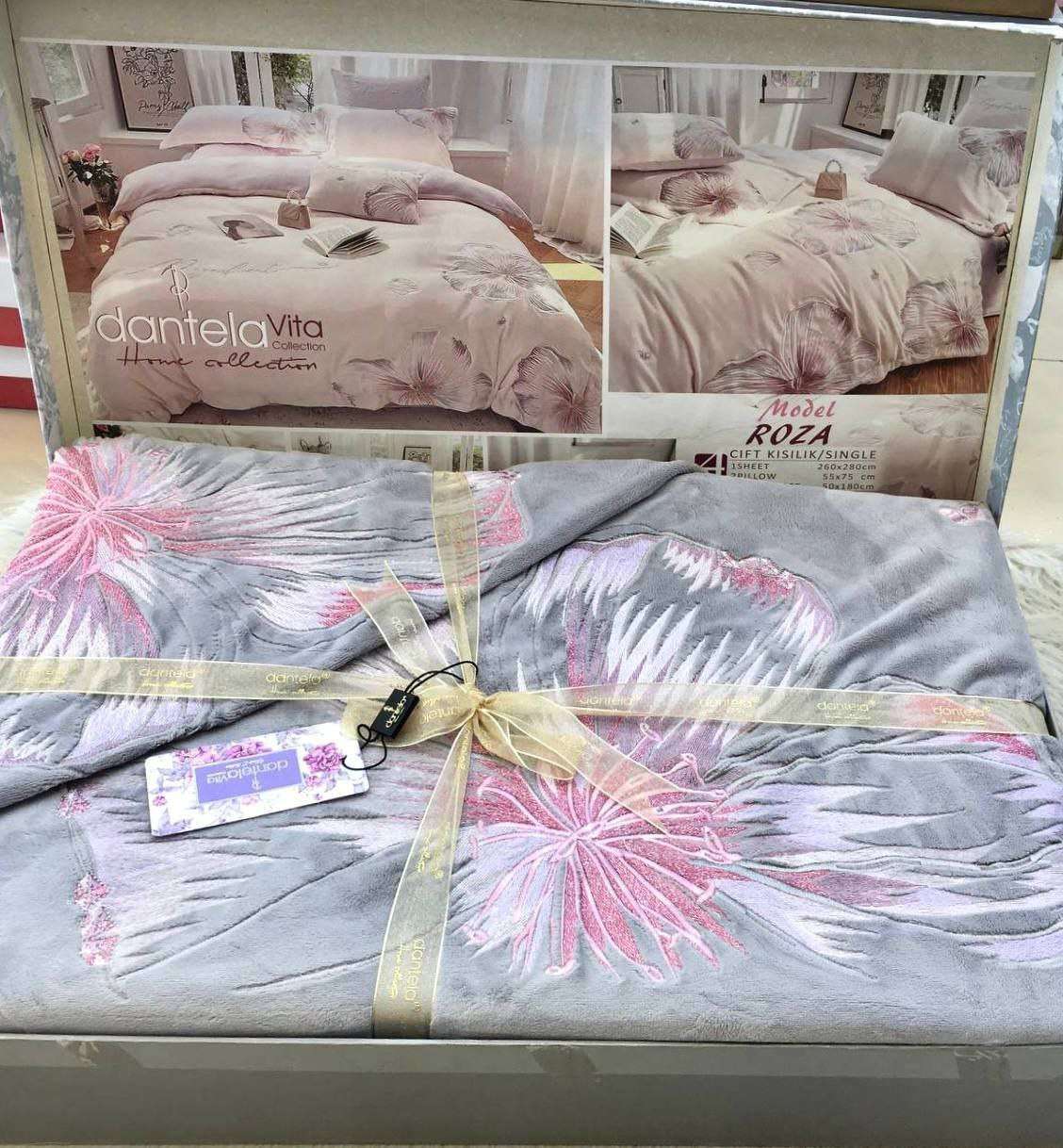 طقم سرير كبير قطيفة مطرز 4 قطع موديل روزا من #دانتيلا فيتا1 مل