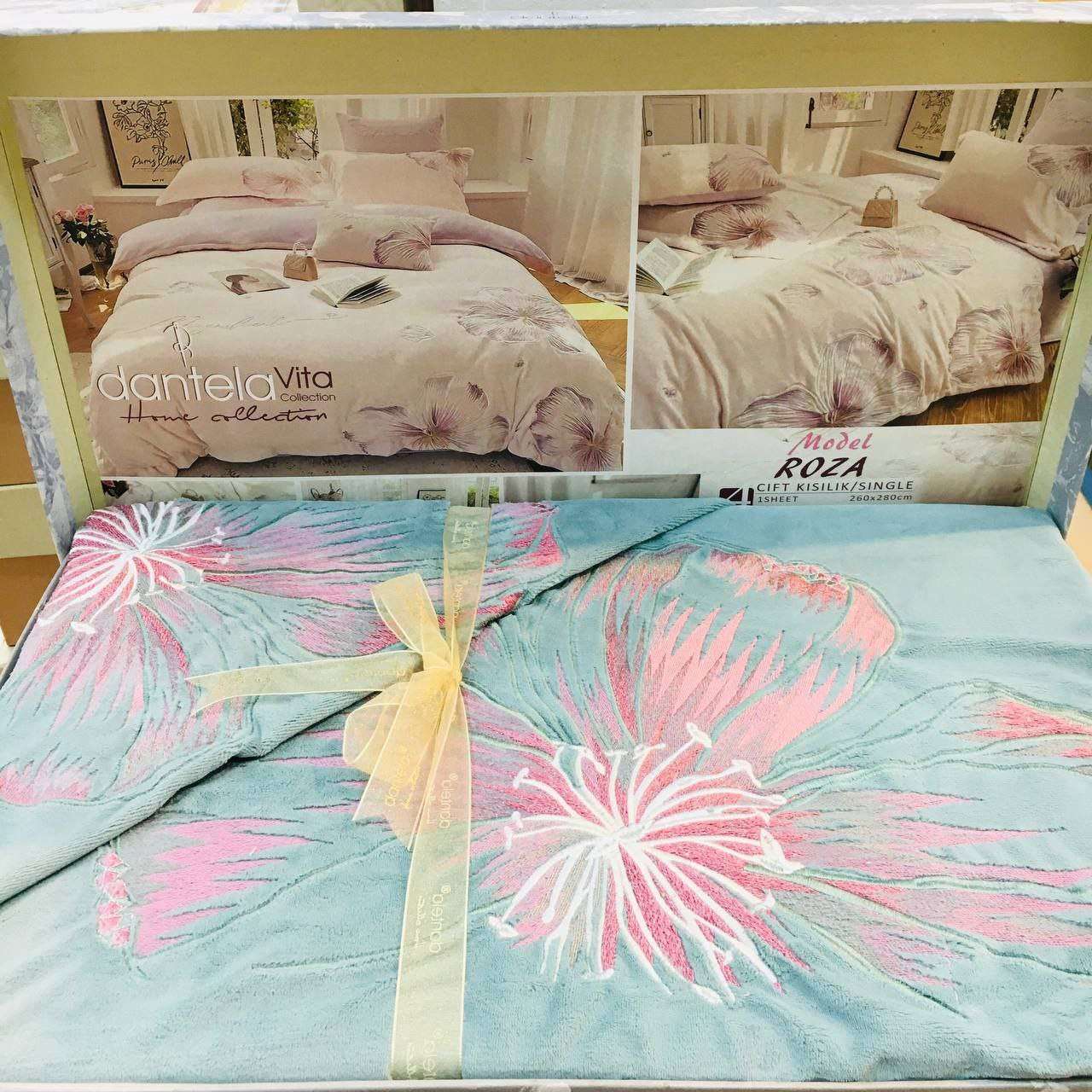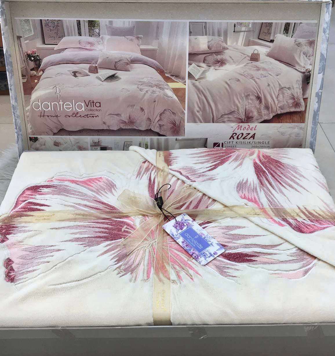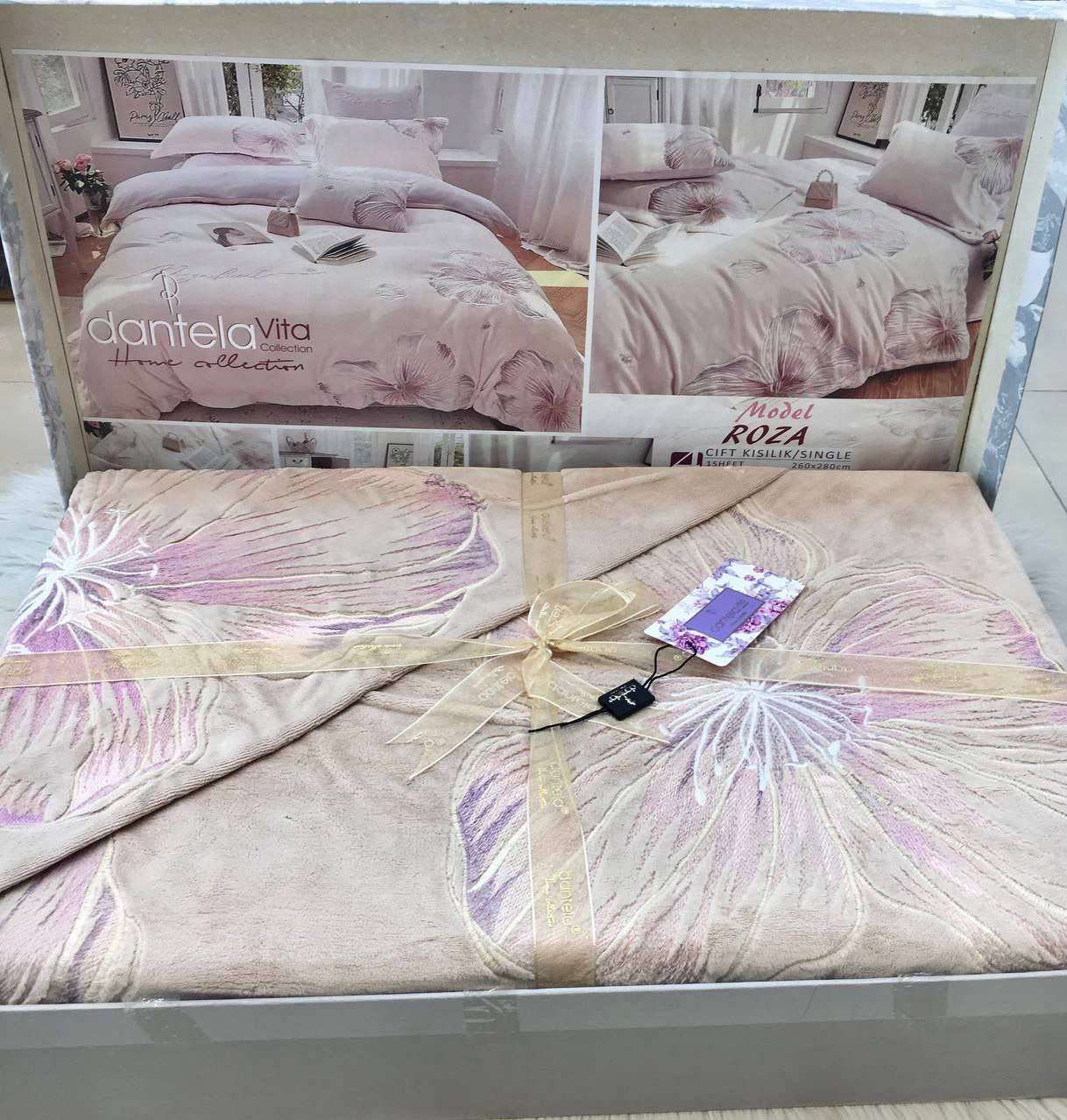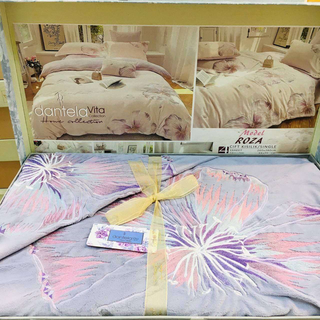 طقم سرير كبير قطيفة مطرز 4 قطع موديل روزا من #دانتيلا فيتا1 مل