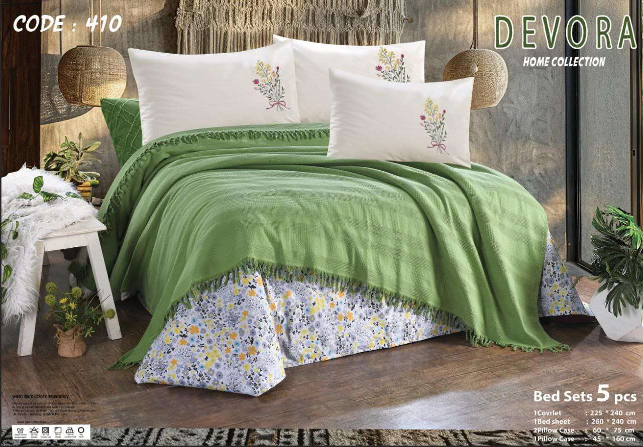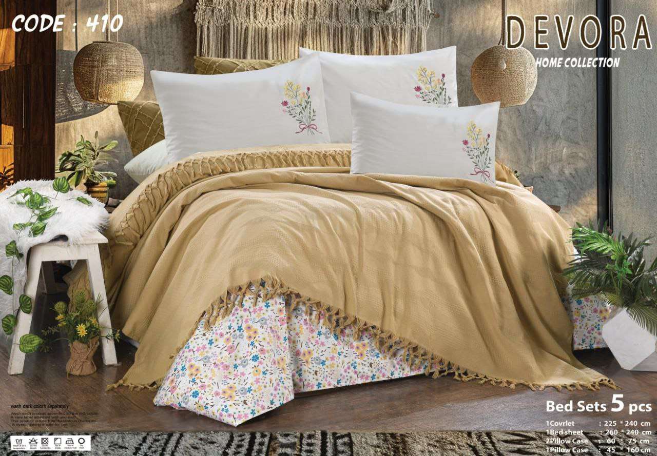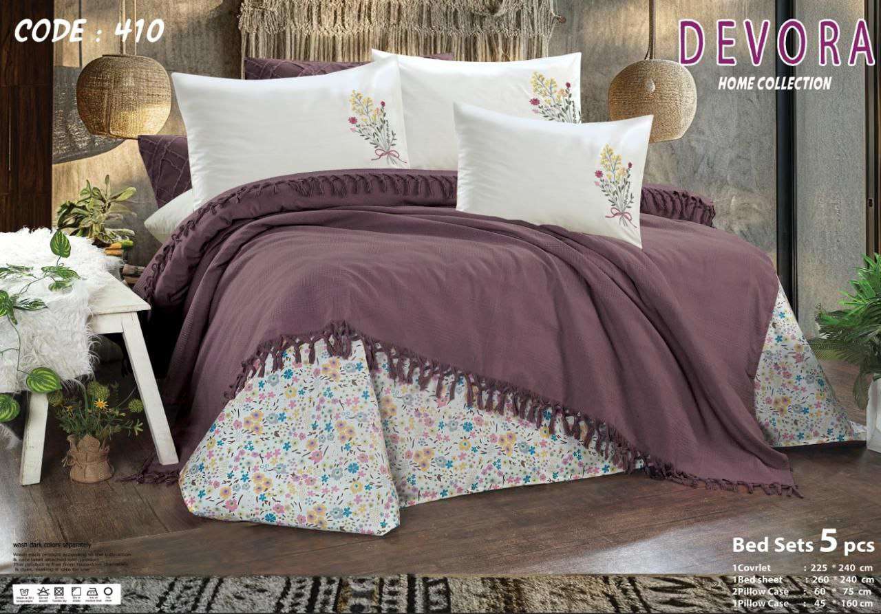 طقم كوفرتة بيكا + ملاية ديفورا 410 قطن صافي 5 قطع كبيركوف
