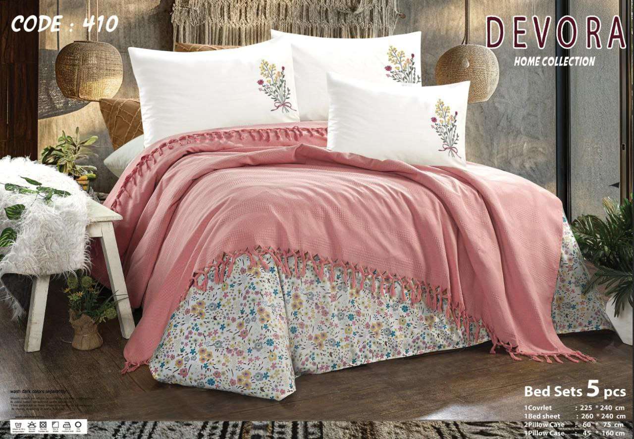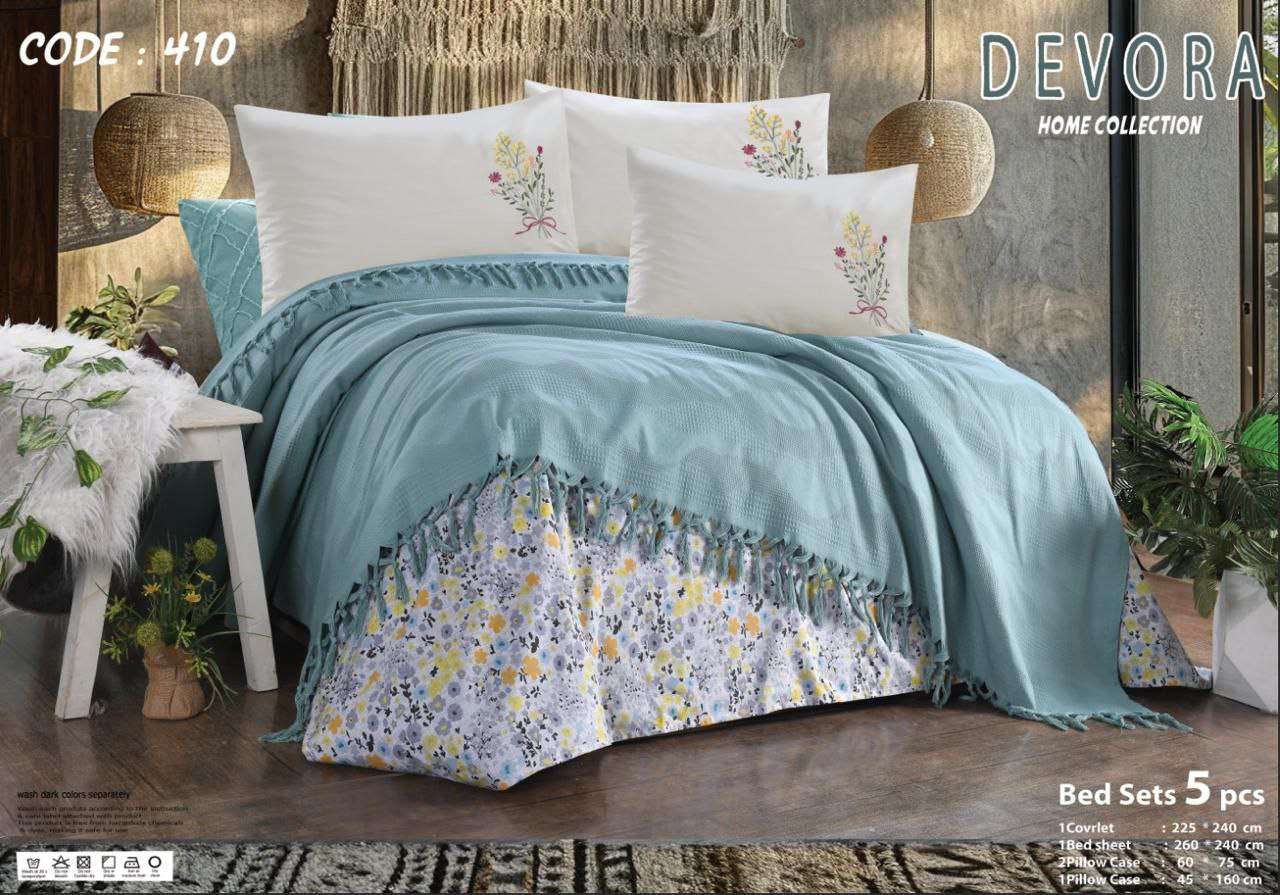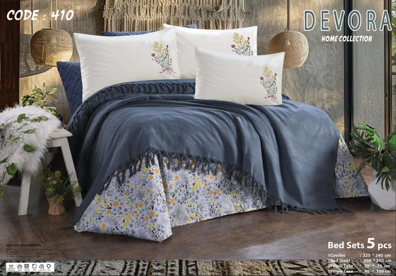 طقم كوفرتة بيكا + ملاية ديفورا 410 قطن صافي 5 قطع كبيركوف