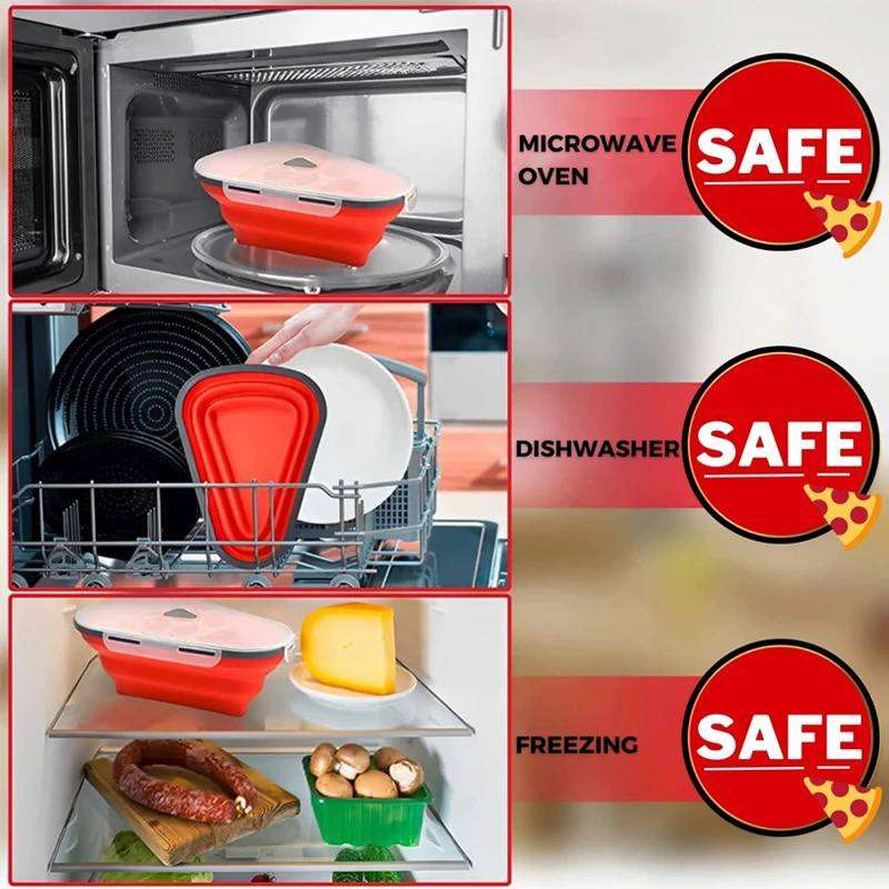 Silicone Pizza Storage Container Reusable Pizza Container علبة حفظ البيتزا 👍👌 علبة سليكون بالكامل لحفظ البيتزا 5 دور بغطاء محكم الغلق حجم مميز جدا..بتدخل المايكرويف