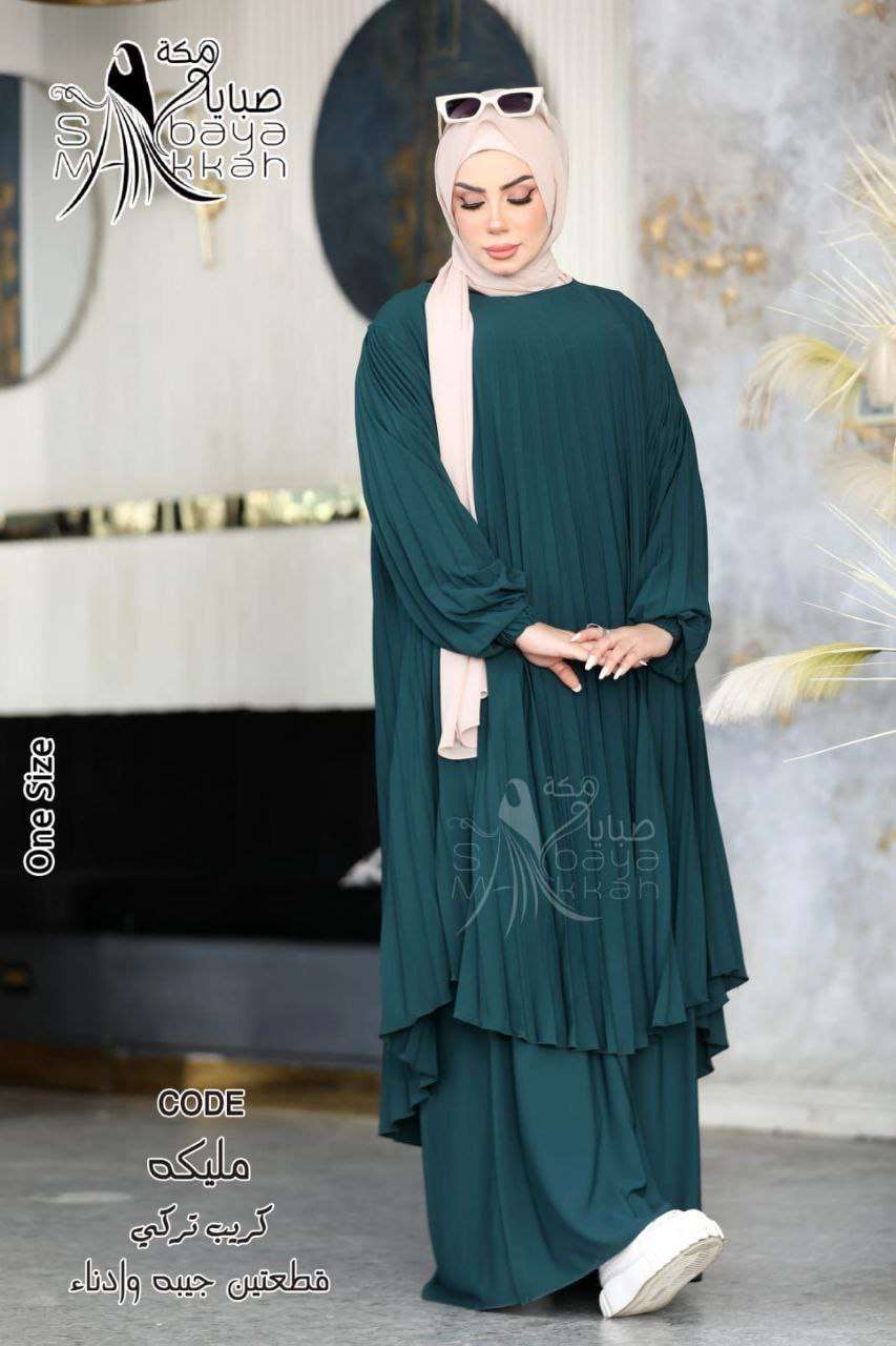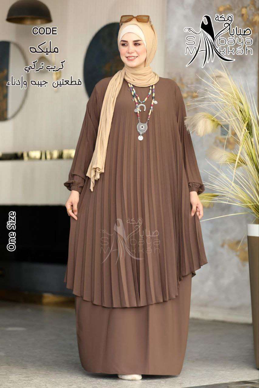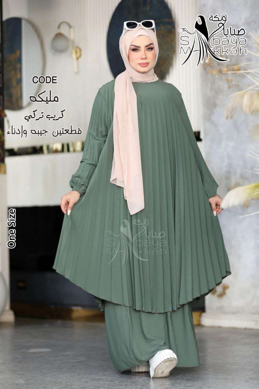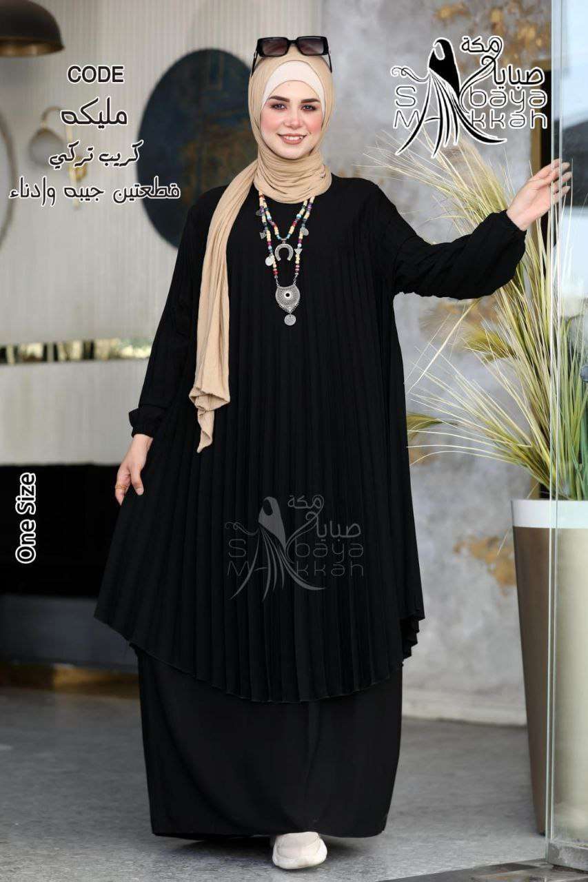 💫مليكه ⚡ادناء بليسيه الطويل قطعتين( جيبه . ادناء ) ⚡خامه // كريب تركي 🌻بسعر 820 بدلاً من 920🌻💪 وان سايز ل110مرتاح