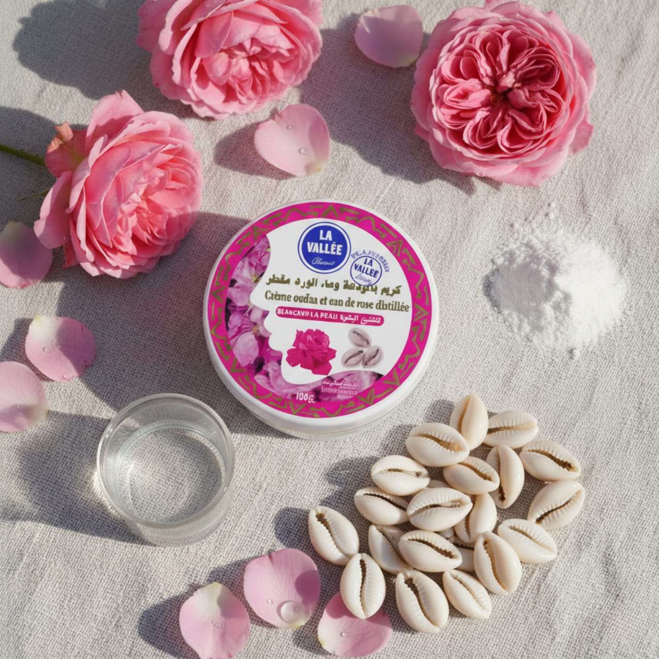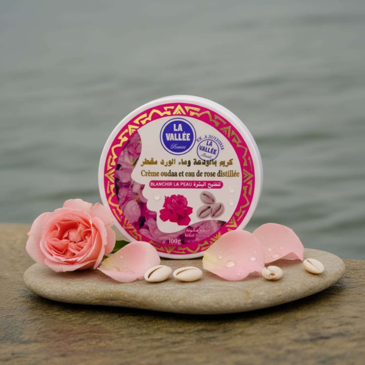 يتميز كريم الودعة وماء الورد المقطر من قلعة مكونه طبيعي 100% و خالي من أية مواد كيميائية. تستعمله نساء المغرب للحفاظ على نعومة و شباب بشرتهن. كما يُستخدم أيضاً في تفتيح و تبييض مختلف مناطق الجسم، كال