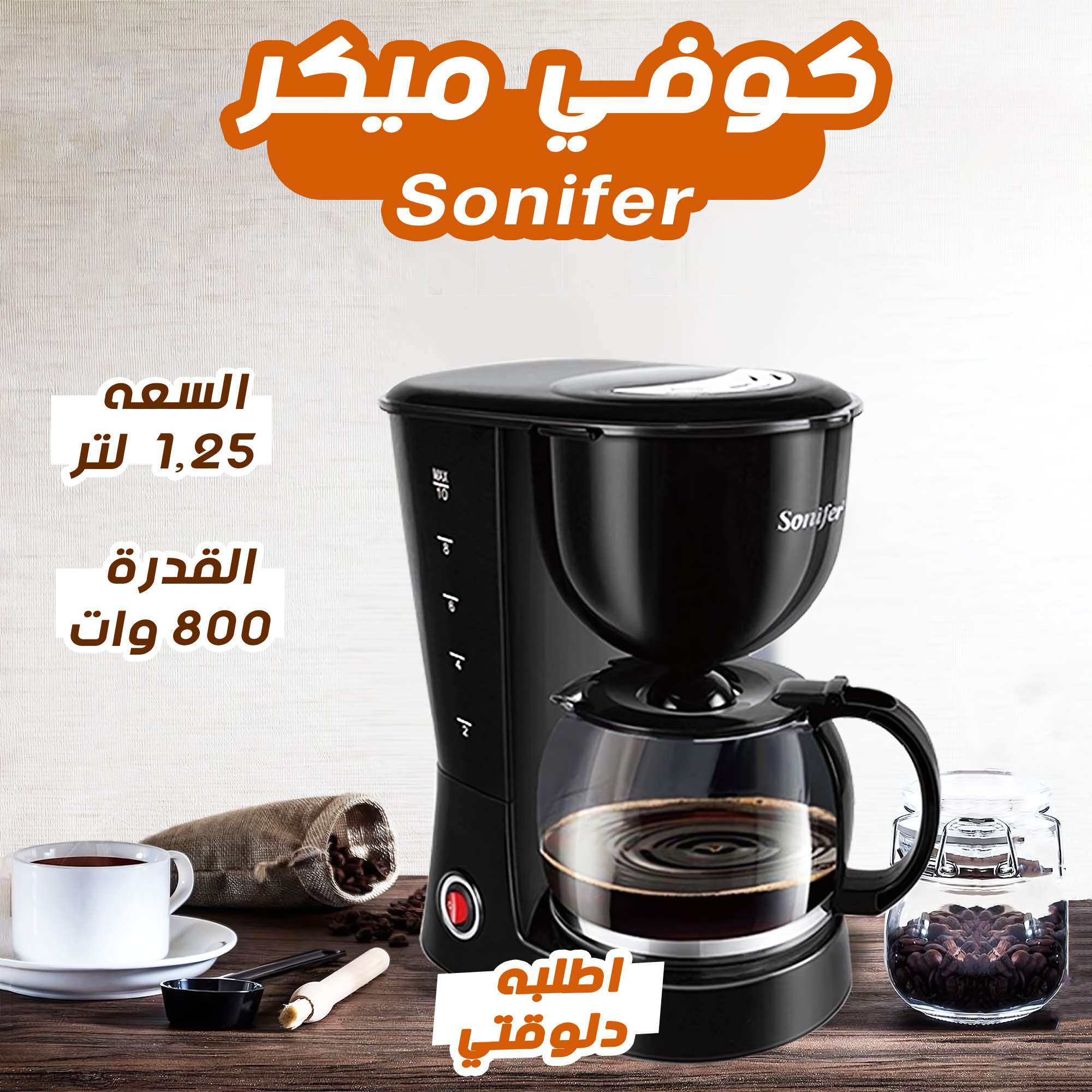 • ☕ جهّز قهوتك بكل سهولة وأناقة مع كوفي ميكر 1.25 لتر 800 وات من Sonifer! 🌟 الجهاز الأمثل لعشاق القهوة بفضل سرعته وسعته الكبيرة. 💪